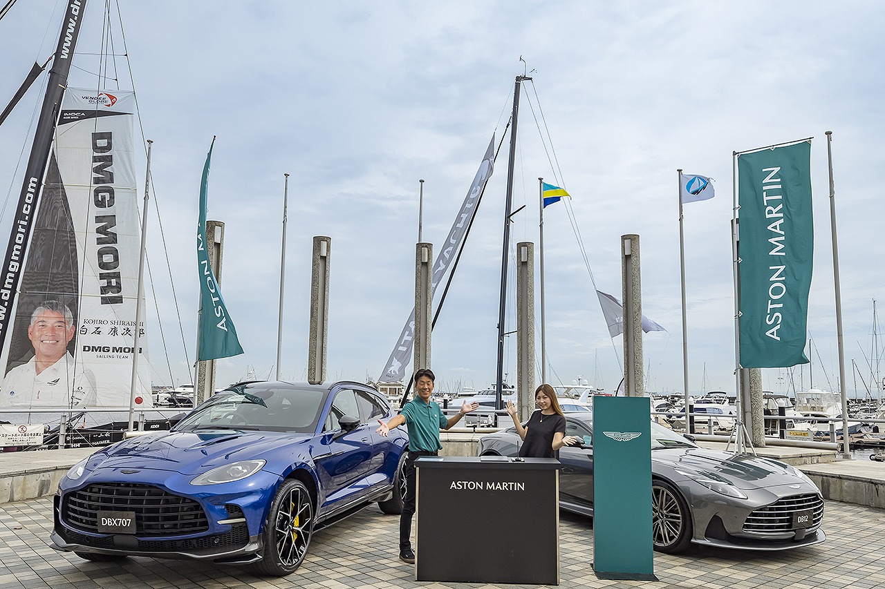 陸上展示ブースでは、マリン用品の販売や各種サービスの案内、外国車の展示なども行われ、こちらもにぎわいを見せていた