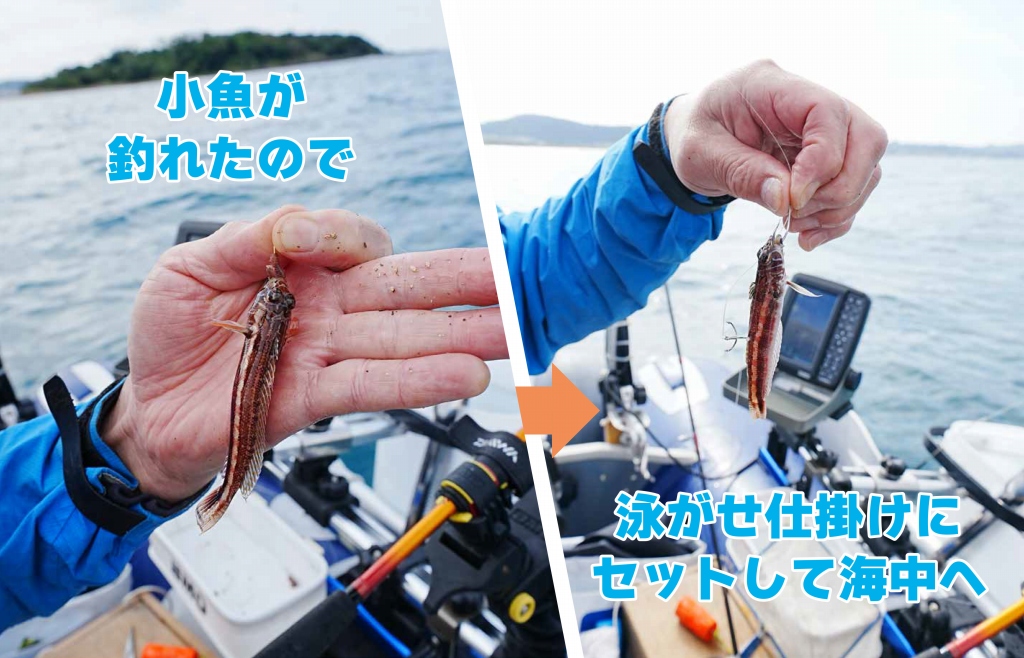 その後、小生にも小さなエソが。これは泳がせ釣りのエサになりそうとキープして、泳がせ仕掛けのハリを掛けようとしたところで元気にジャンプして海に戻っていってしまった……