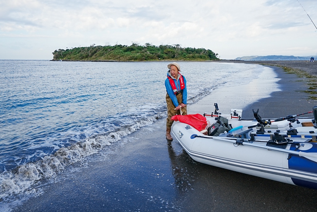 沖ノ島は南北に波打ち際があるため、風向などによっていいほうで出艇・帰着ができるので、安心してボート釣りが楽しめるのだ。近くの釣具店「マリンスポット釣吉」にて、ジャリメと泳がせ釣り用の鋳込みテンビンを購入して、沖ノ島海水浴場へと向かう。