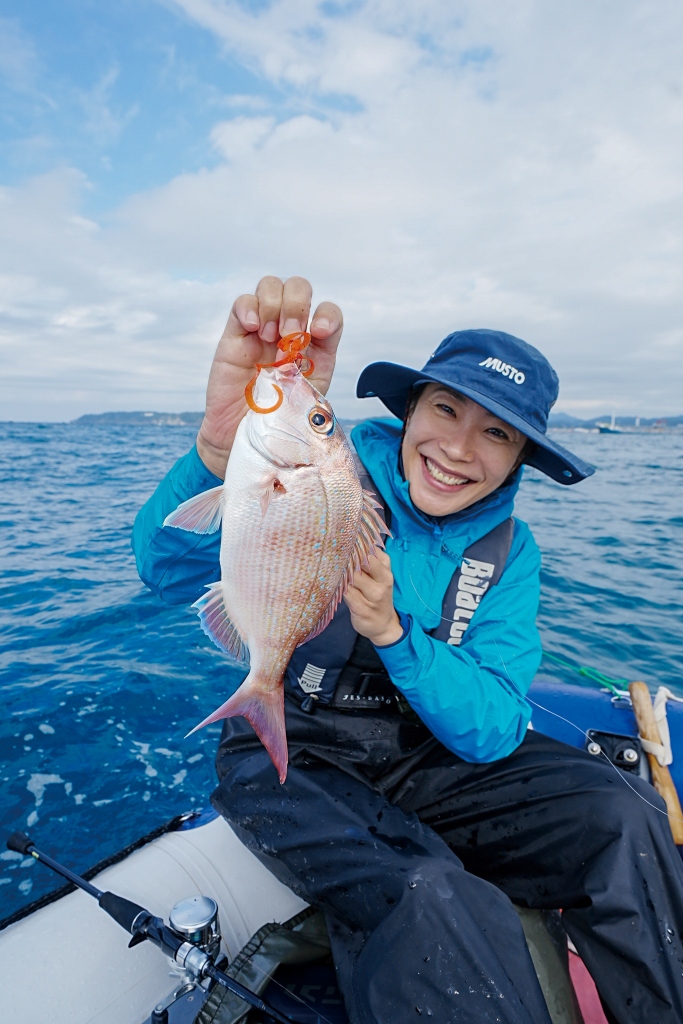 だいぶ浅いところまで流されたときに、またしてもM嬢にアタリ。よく引く魚だと思ったら、チャリコ(マダイの若魚)だった。「もう少し大きくなったら掛かってね~」とリリースする