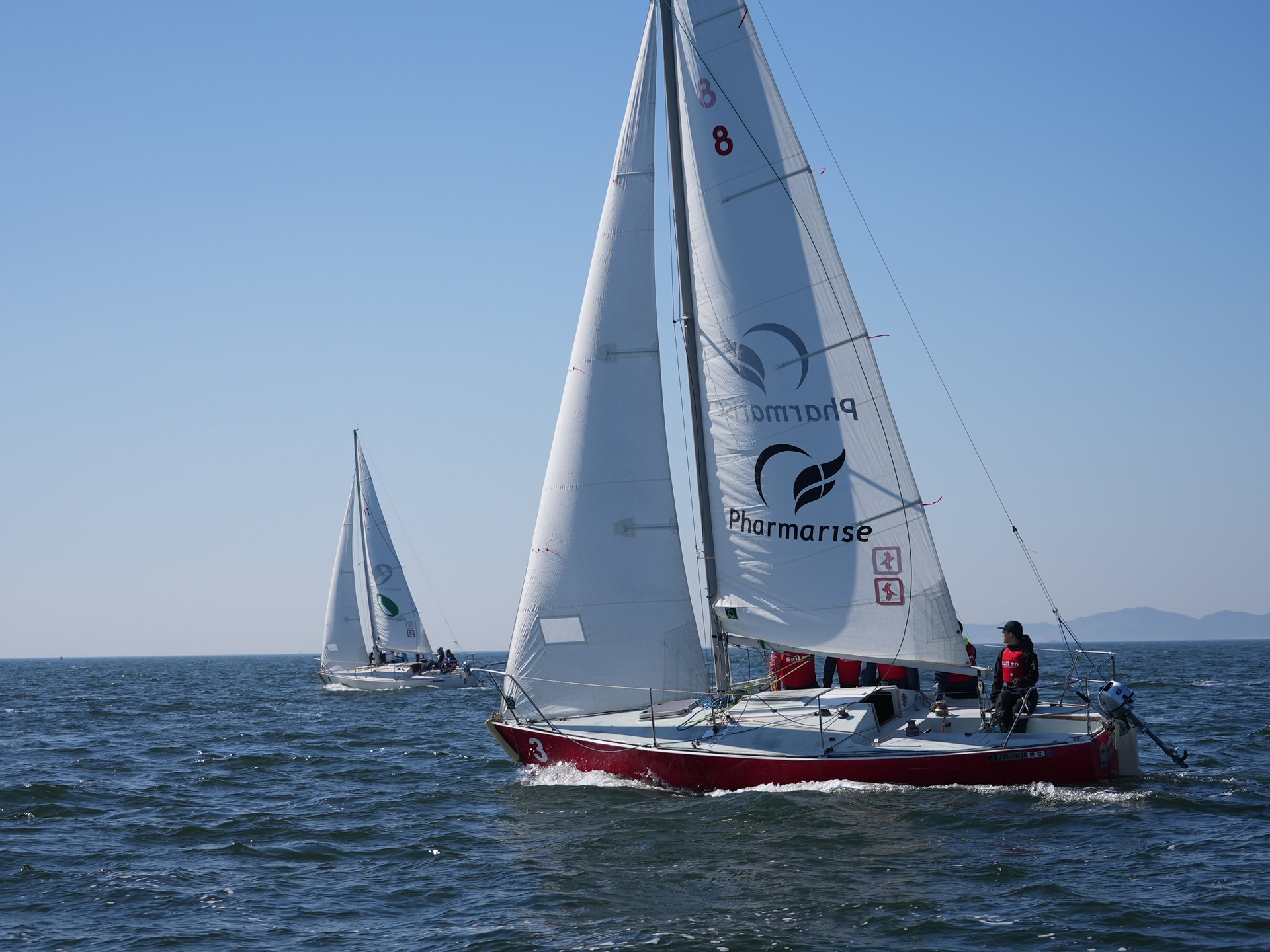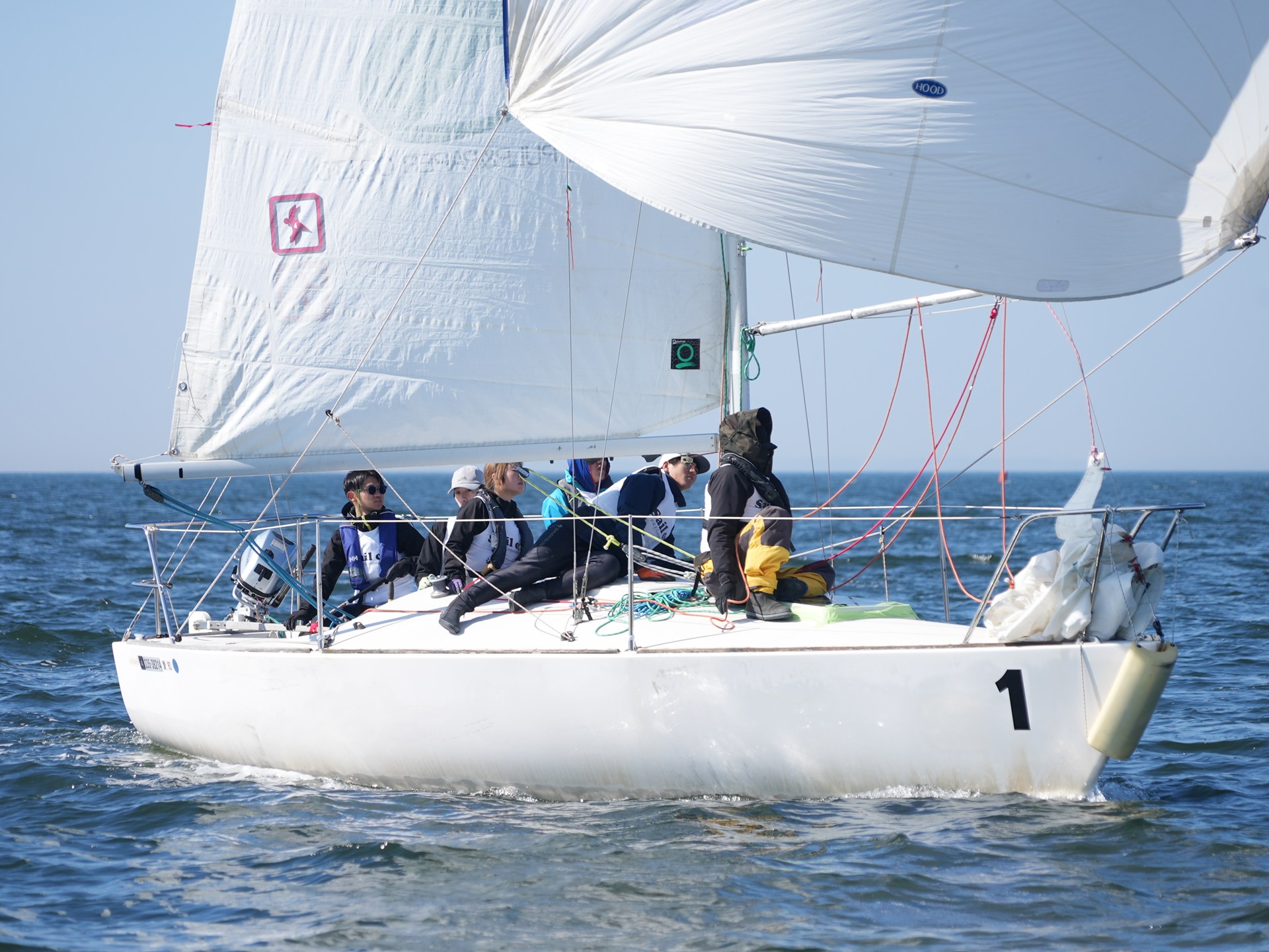 今年は東京大学、防衛大学校、日本大学、明治学院大学の4チームのほか、慶応義塾大学がオープン参加し、三河みとマリーナが所有するJ/24を使い、ワンデザインレースが繰り広げられた。