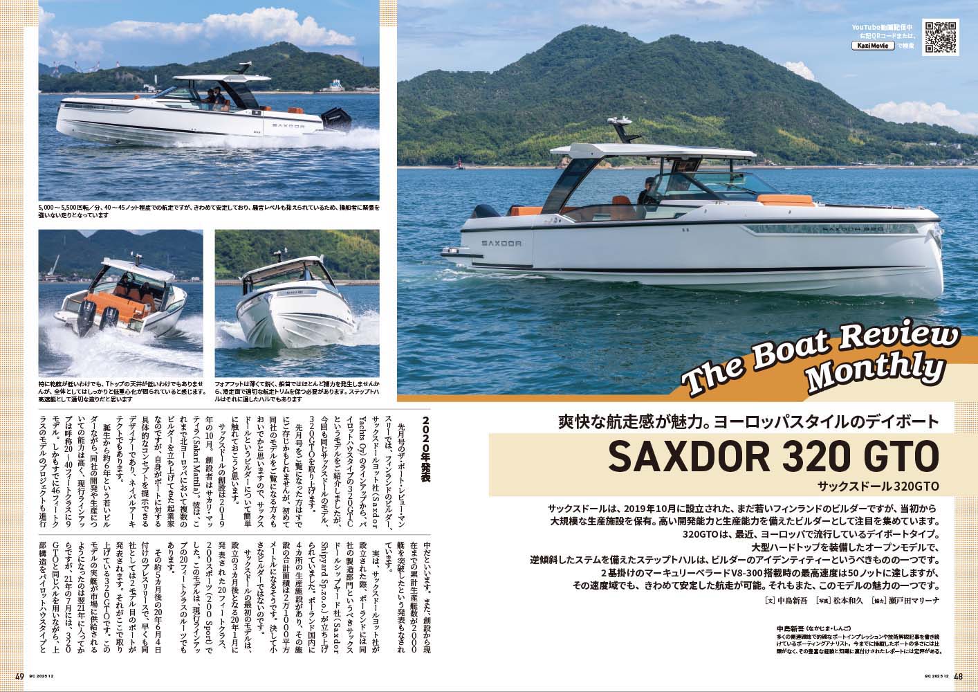 先月号に引き続き、サックスドールの紹介。大型ハードトップを装備したオープンタイプの320GTOは、まさに世界が注目している一艇。圧倒的な航走能力が魅力の、ヨーロッパスタイルのデイボートです