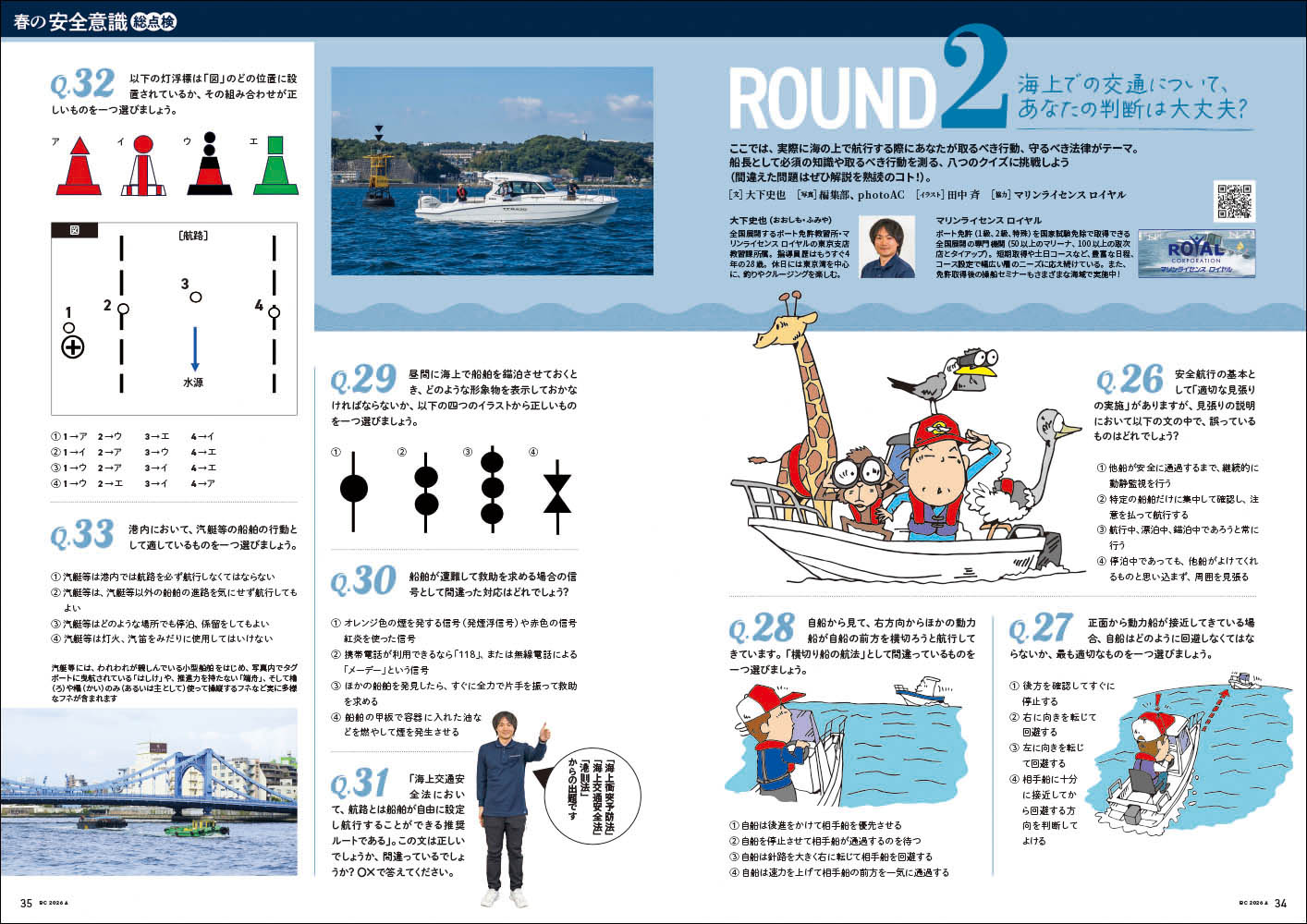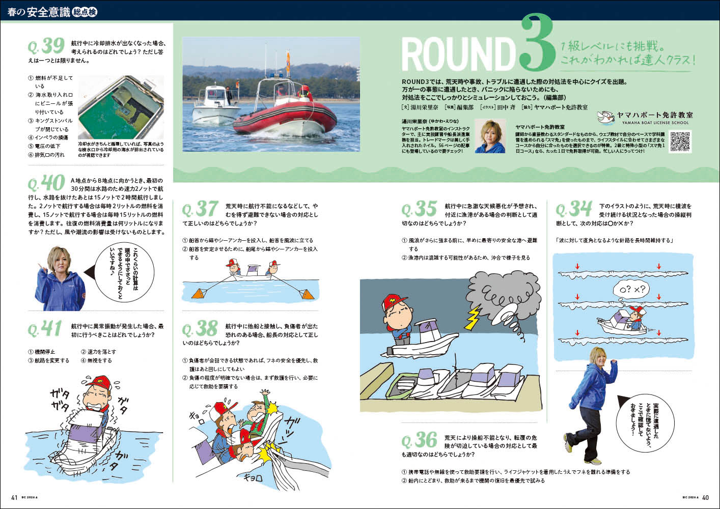 基礎的な知識を確認するROUND1、実際に海を走るうえで知っておかなくてはならないことを問われるROUND2、荒天時やトラブル発生時の対処法を学ぶROUND3にわかれていて、総合的にあなたの経験値をジャッジします。ベテランボーターによる、実体験をもとにした出題や、海のトリビアもあります。楽しみながら、知識を復習していきましょう!