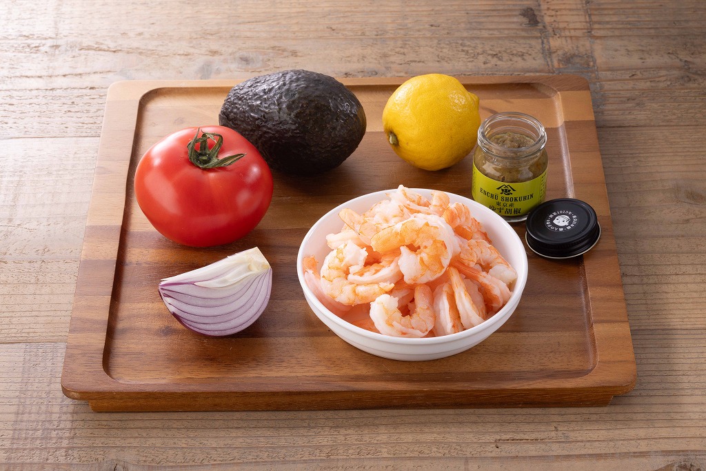 プリプリでさっぱりしたエビと、こってりとしたコクのアボカドという最強の組み合わせを、さわやかなレモンソースでいただく冷ややかなごちそう。フライパンを使わずにできる、切って混ぜるだけの手軽さが魅力の一皿です。彩りもよいので、仲間に振る舞っても盛り上がること間違いなし!