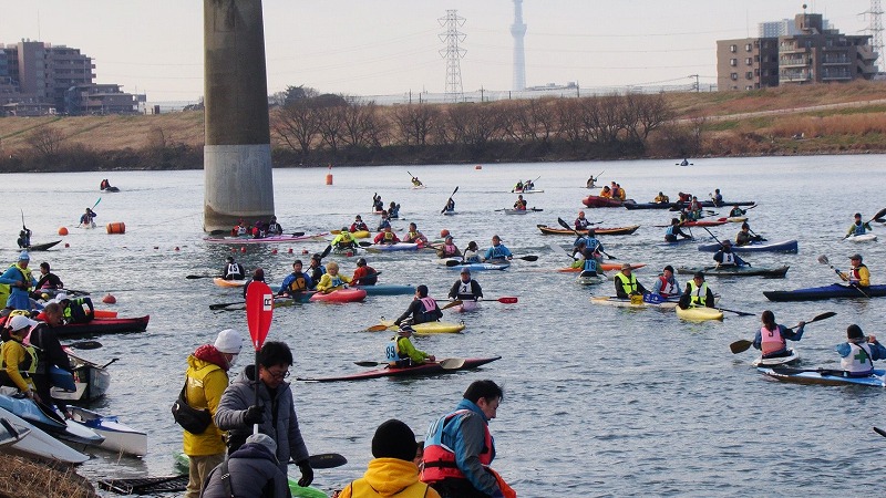 新春の風物詩として江戸川で親しまれている「千葉県知事杯争奪 クラブ対抗カヌー競技大会」は、毎年400人以上の選手が出場し、レーシングカヤックからアウトリガーカヌー、ファルトボート、SUPなど、39ものクラスが用意されている大規模な大会です。