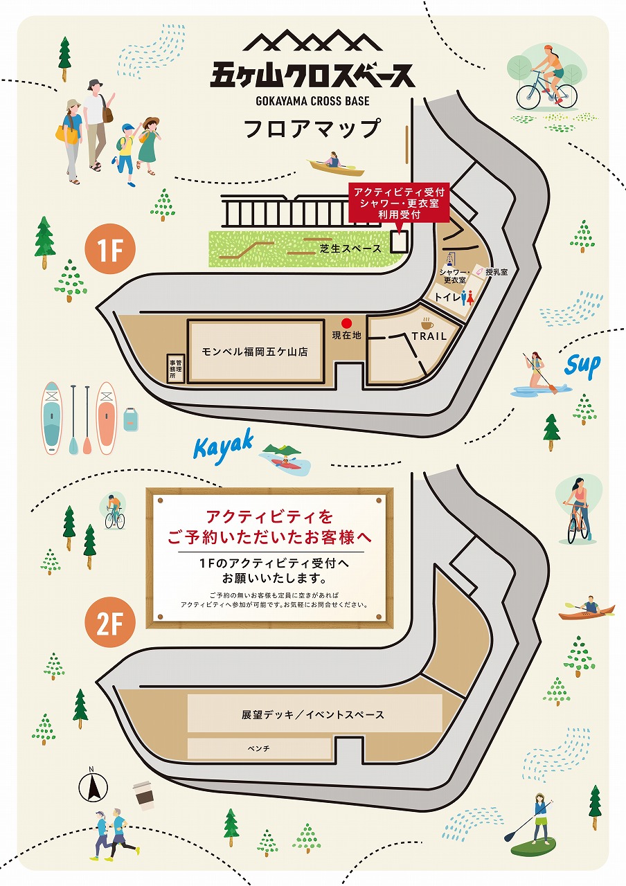 こうした湖面アクティビティーを軸とした取り組みの背景には、これまで那珂川市とアウトドアメーカー・モンベルによって進められてきた施設整備とエリアづくりがある。両者は2017年に包括連携協定を締結し、自然環境の保全とアウトドア活動を通じた地域振興を推進。2019年にはキャンプ場「モンベル五ケ山ベースキャンプ」と、ショップやレストランを備えた「五ケ山クロスベース」を整備し、都市近郊型アウトドア拠点としての基盤を築いてきた。