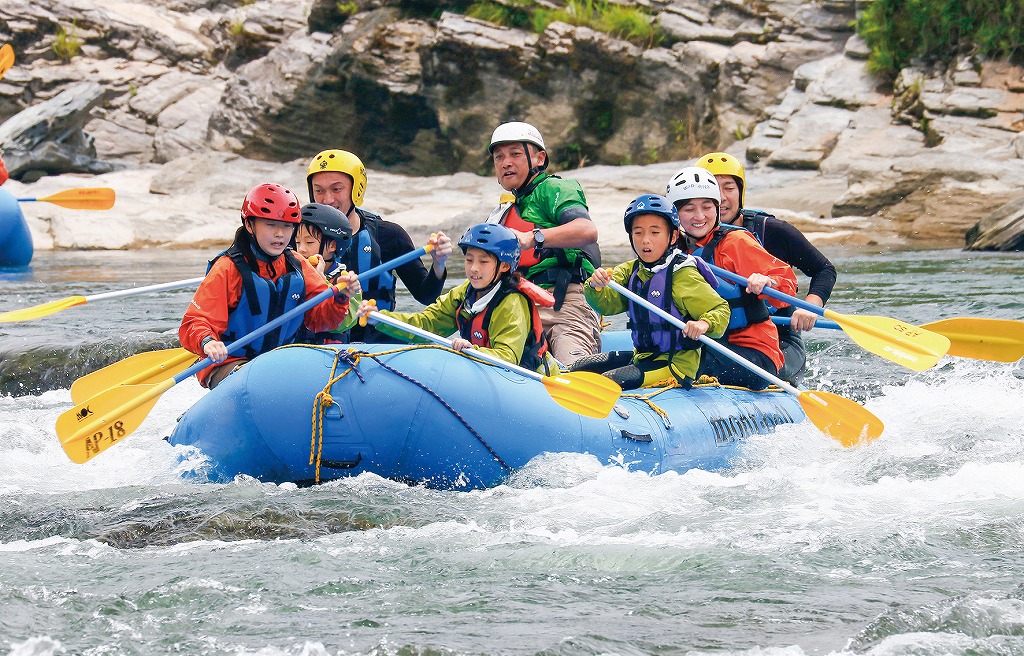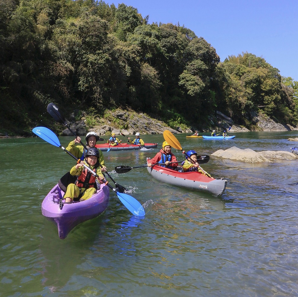 モンベルストアのほかに、コテージやレストラン「ハーベステラス」、ビジターセンター、温浴施設などが一体となった複合施設で、宿泊を絡めたM.O.C.参加に最適です。高知市内からクルマで約1時間の距離で、関東圏から飛行機での旅行も検討できます。一般的なカヤック体験以外に、パックラフト、インフレータブルカヤックを使った初心者向けの吉野川ツーリングや、ラフティング、SUP体験、フォールディングカヤック体験、ホワイトウオーターカヤックの講習やツアーなど、盛りだくさんのM.O.C.プランが用意されています。