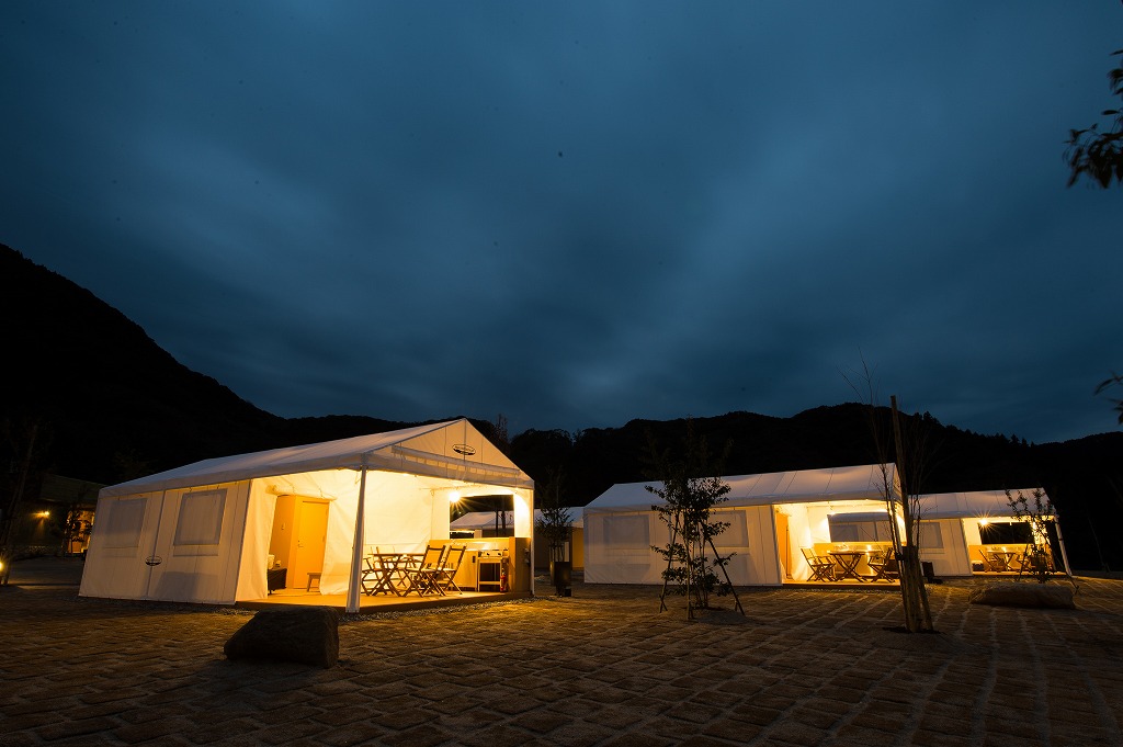 福岡市街からも近い脊振山系の五ケ山に、アウトドア活動の拠点として誕生した「五ケ山クロス」は、モンベルが手掛けるキャンプ場と、リバーパーク、そしてモンベルストアのある五ケ山ベースから成ります。M.O.C.のカヤックイベントは、普段は立ち入れない五ケ山ダムで開催。4歳以上から参加可能な「お手軽」コースと、対岸まで漕いで上陸する「周遊」コースが用意されています。L字型の壁とテントを組み合わせた“ウォールテンテッド”キャンプサイトが特徴的なキャンプ場利用と合わせて参加する人も多いです。