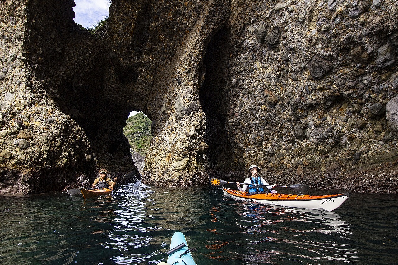 今回のフィールドは伊豆半島。こちらの南西側、駿河湾と太平洋に面したエリアは、関東屈指のシーカヤックフィールドとして知られています。当日は、そんな場所の中から土肥~田子・浮島エリアをピックアップ、一泊二日で思い切り遊ぶことにしました。