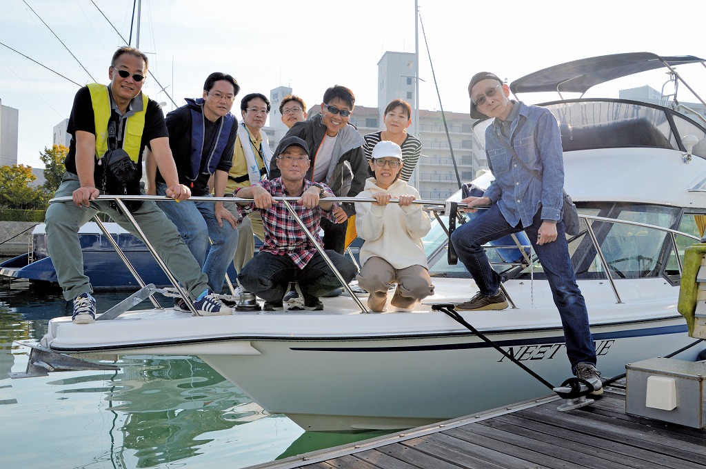 お世話になっている方たちを招いてボートで海に出ることも、私たちのボート遊びでの大きなテーマです。これは、念願の社員旅行にボートで出たときの一枚です