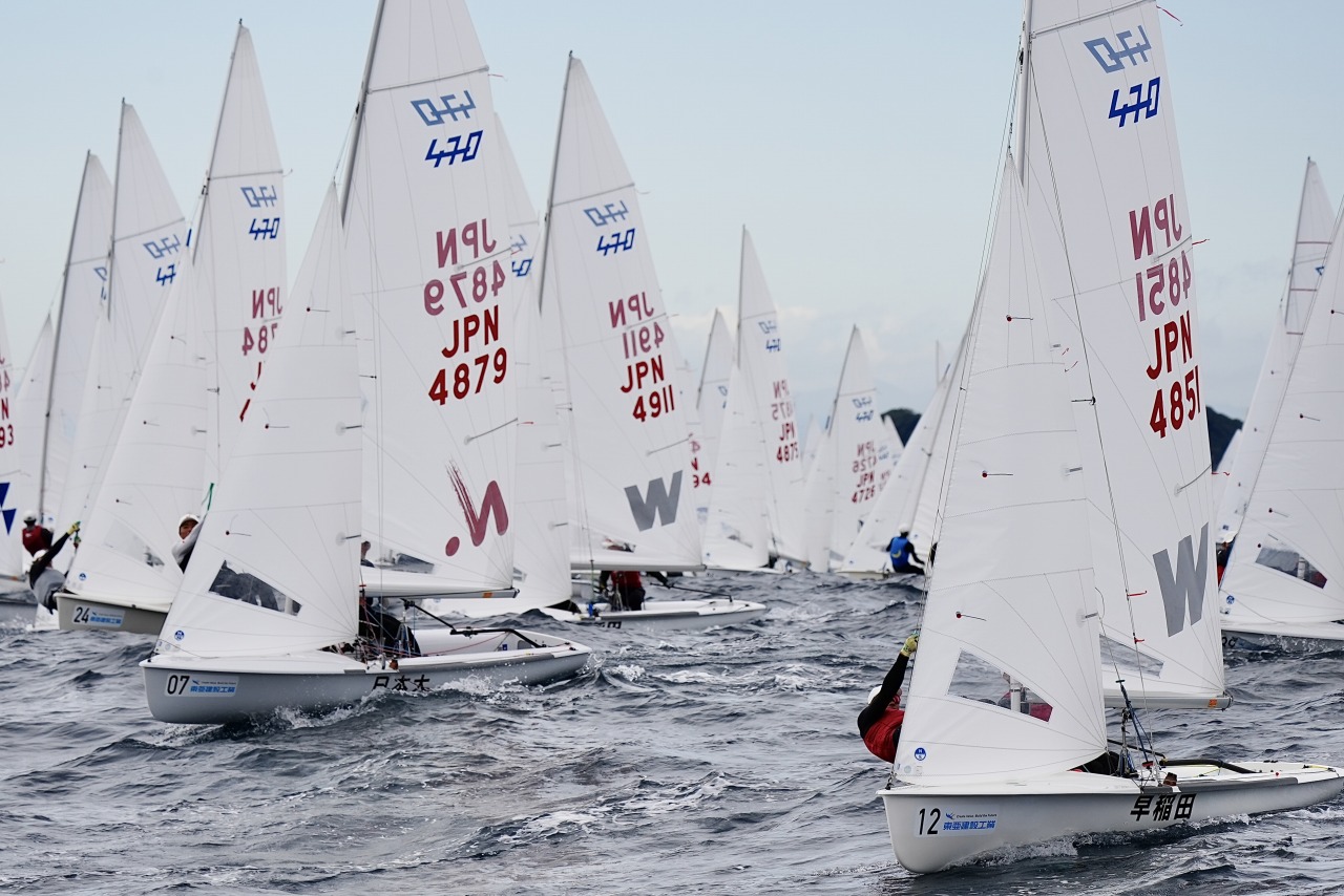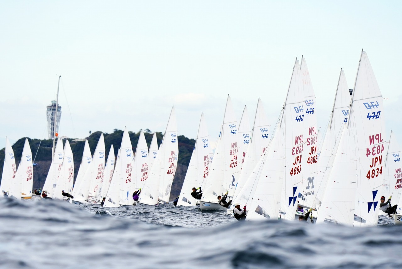 各地の予選を突破した470級・スナイプ級の各24チームが湘南の海で火花を散らしている。
