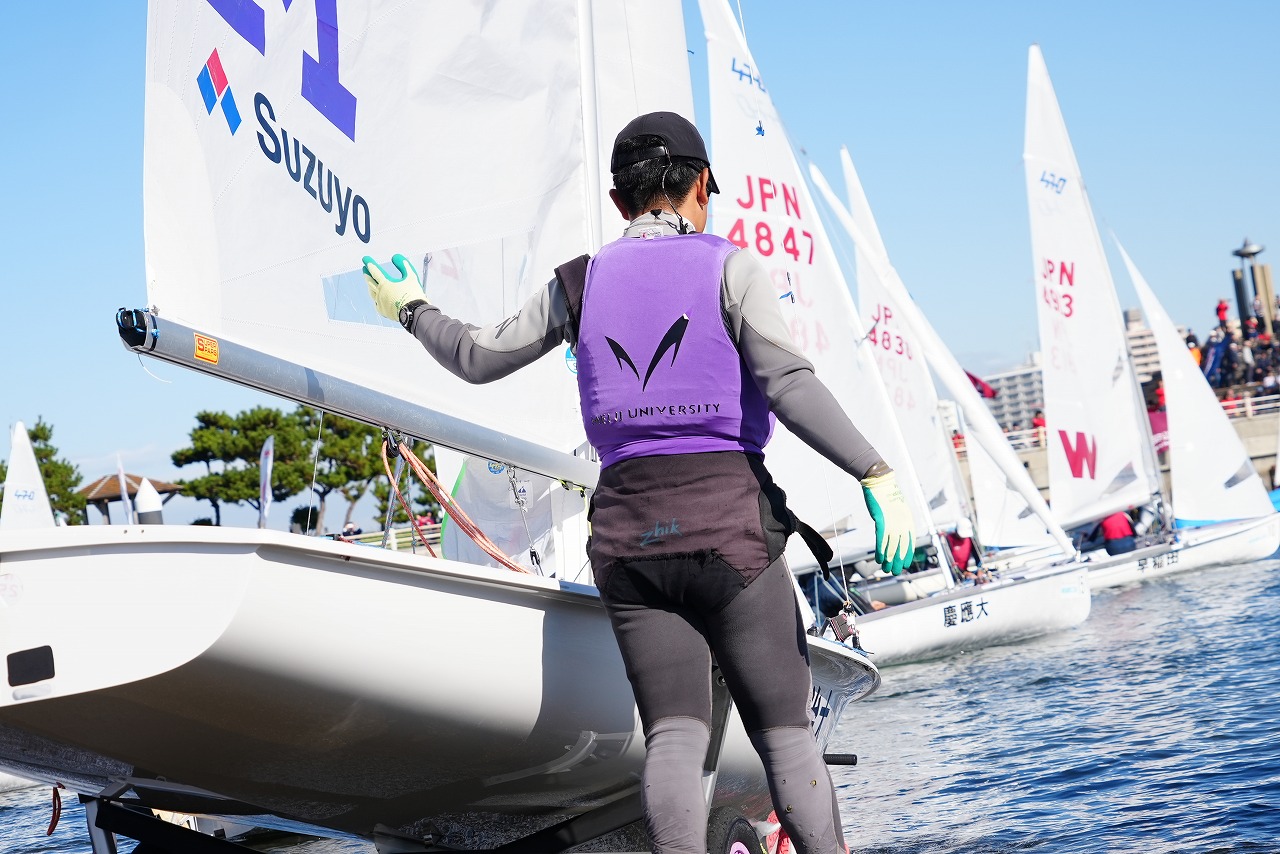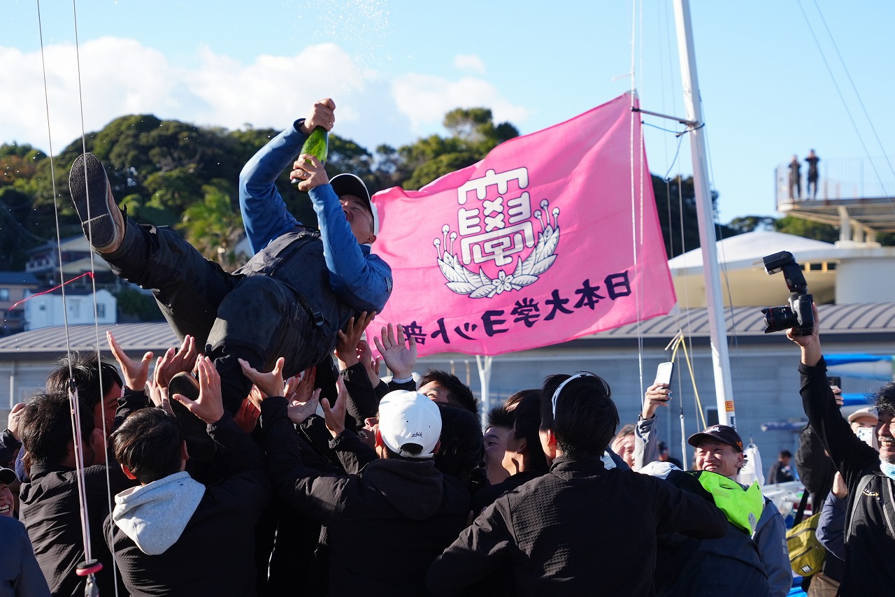 最終日、470級とスナイプ級の合計得点で競う総合部門で、前日首位を奪われた日本大学が再逆転。2011年以来、14年ぶりの総合優勝を果たした。