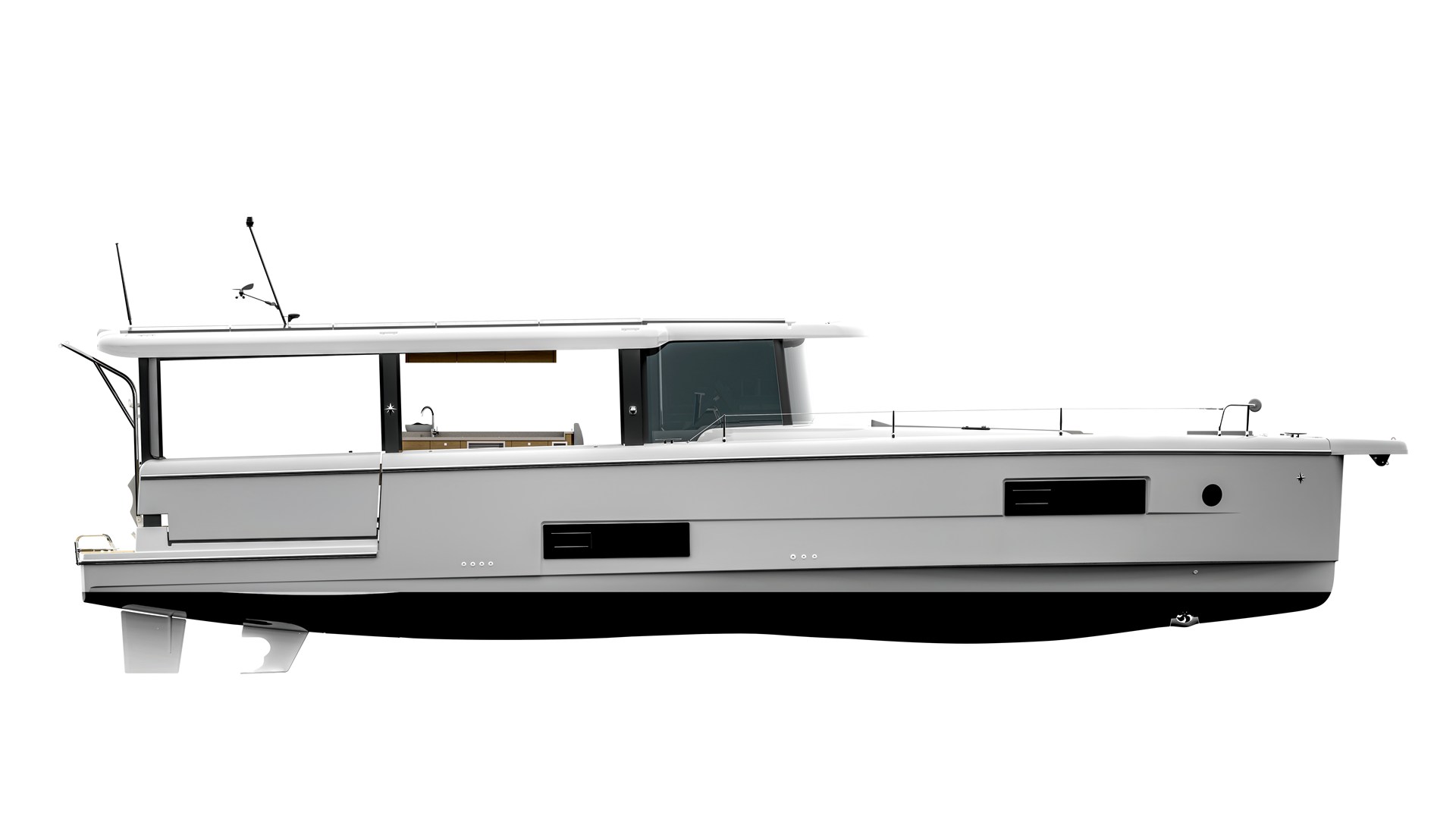 “アイランドクルージング・コンセプト”に基づいてデザインされた、そのプロフィールは、斬新というよりほかにない。モノハルとカタマランの長所をいいとこどりしたもので、水上で過ごす時間をより豊かにしてくれるようなワクワクするニューフェイスである。