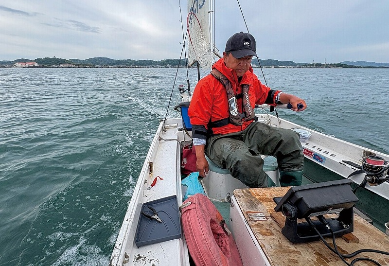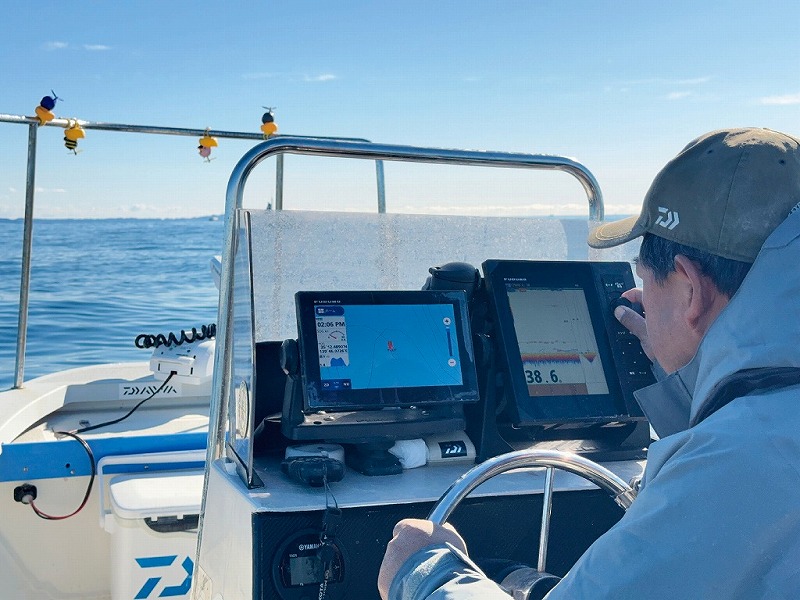 実釣中の小野さん。真剣な表情で魚探を読み解きフネを操り、釣果に結びつけていく