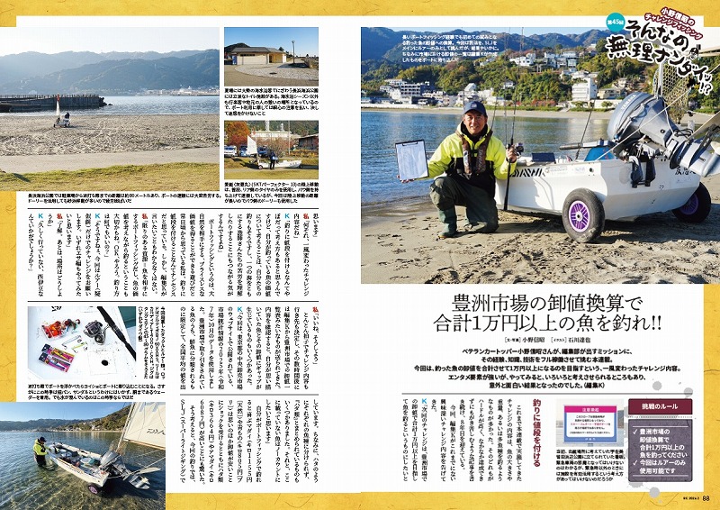 『月刊ボート倶楽部』の人気連載「小野信昭のチャレンジフィッシング そんなの無理ナンダイッ!?」では毎回ユニークなお題に小野さんが果敢に挑んでおります。今年の2月号ではなんと「豊洲市場の卸値換算で合計1万円の魚を釣る!」が目標となりました。