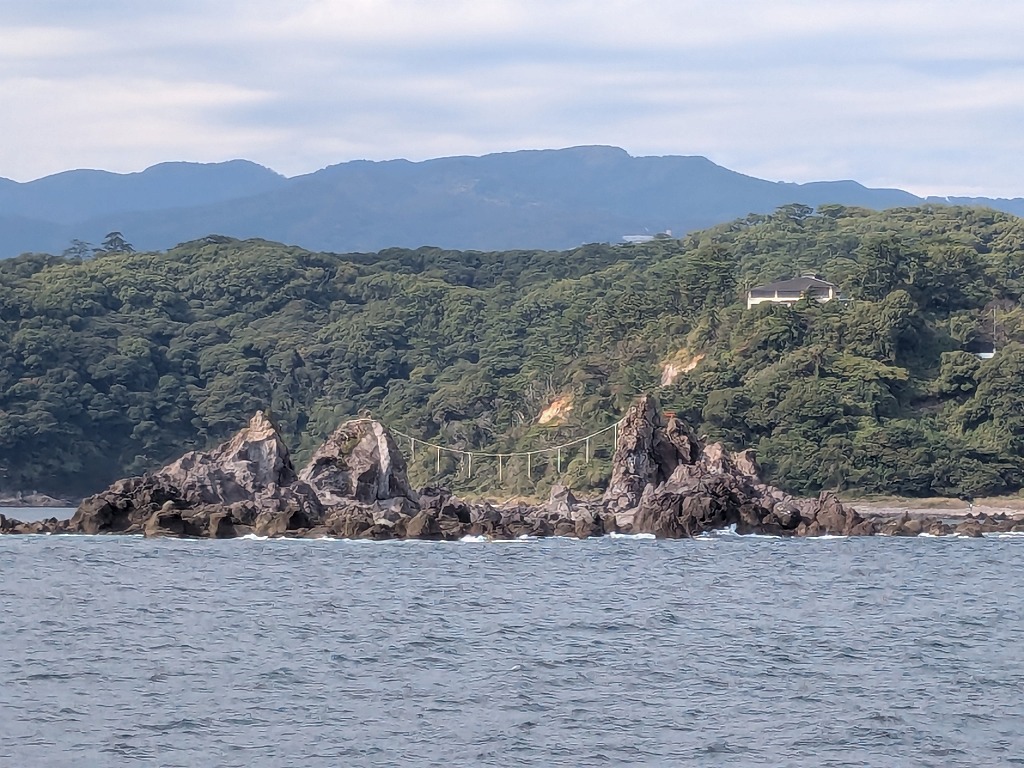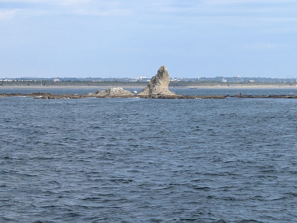 真鶴半島沖、「かながわの景勝50選」にも選定されている観光名所、三ツ石。干潮のときは歩いて渡ることもできる