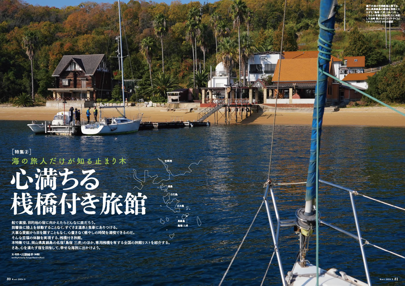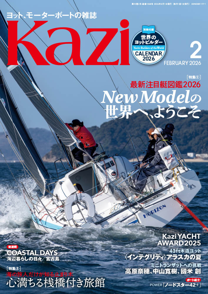 また2025年に本誌で紹介したセールボートの中からアワードを決定する「Kazi Yacht AWARAD 2025」の発表や、愛艇で直接宿に向かうことができる「桟橋付き旅館」特集など、盛りだくさんの内容でお届けします。