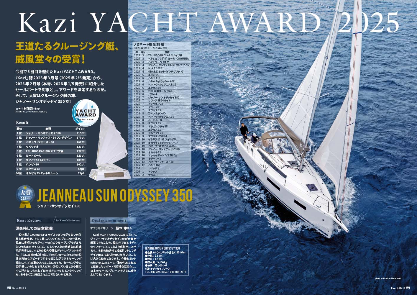 6回目を迎えたKazi YACHT AWARD。『Kazi』誌2025年3月号(2025年2/5発売)から、2026年2月号(本号、2026年1/5発売)に紹介したセールボートを対象とし、アワードを決定します。
