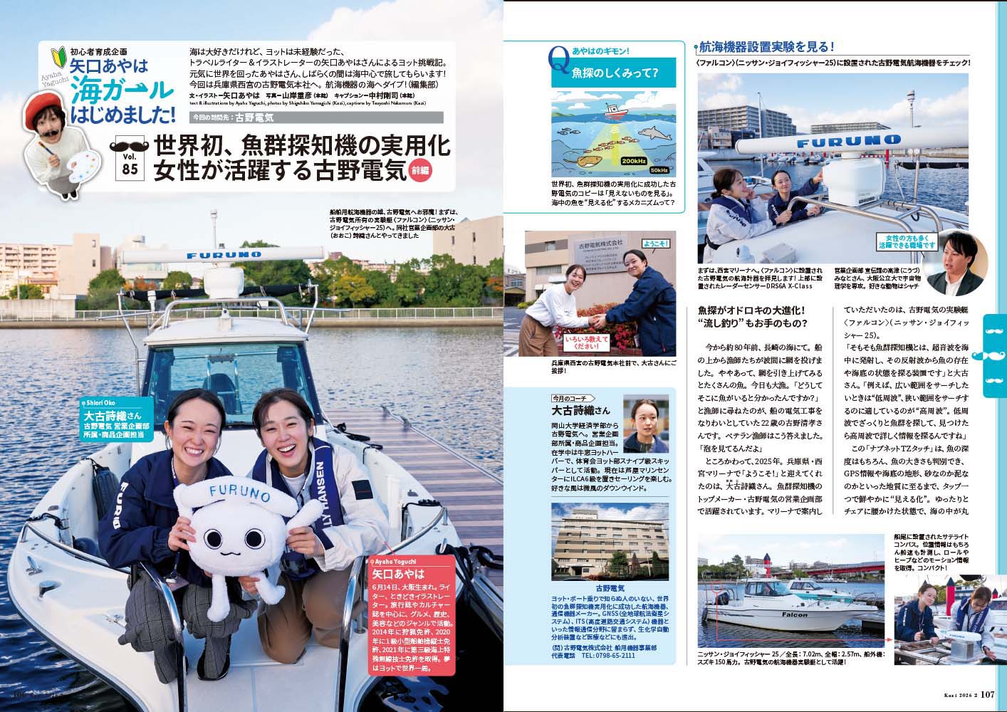 海ガール・矢口あやはさんによるヨット挑戦記。今回あやはさんは、兵庫県西宮の古野電気本社を訪れ、航海機器の海へダイブ!