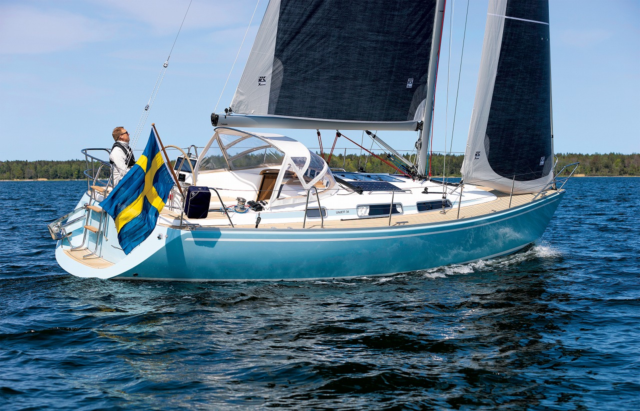 photo by Linjett Yachts|北欧のセーラーが“最後に行き着く艇”、バルト海を走るリンジェット34。アジア総代理店である、たひらみつおさんが建造するアジア1号艇のハルは、このような美しいライトブルーだ