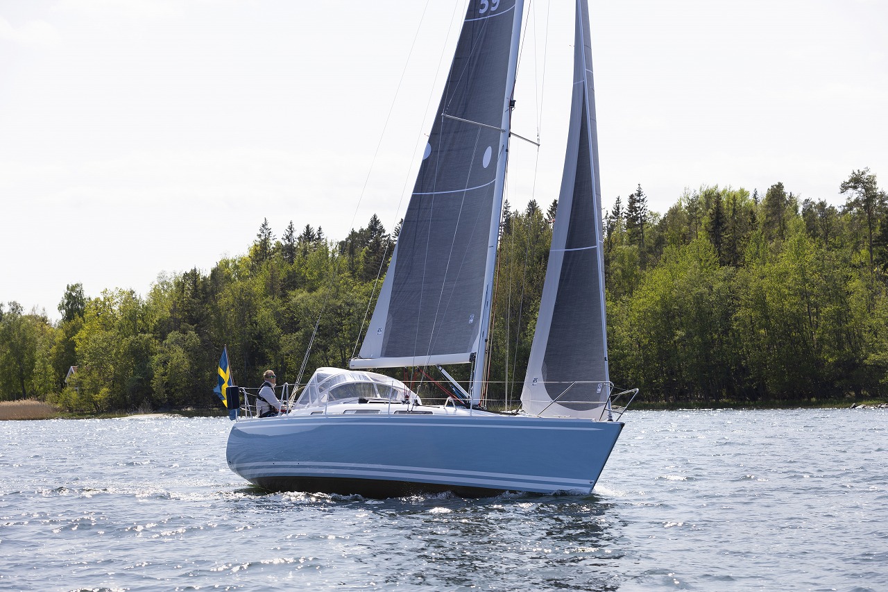 photo by Linjett Yachts|北欧のセーラーが“最後に行き着く艇”、バルト海を走るリンジェット34。アジア総代理店である、たひらみつおさんが建造するアジア1号艇のハルは、このような美しいライトブルーだ