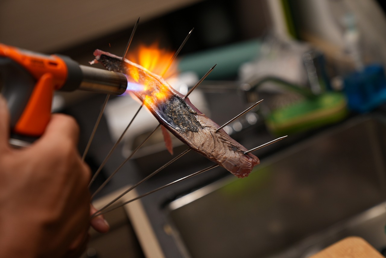 刺身とたたきを楽しもう。バーナーでカツオを炙る!