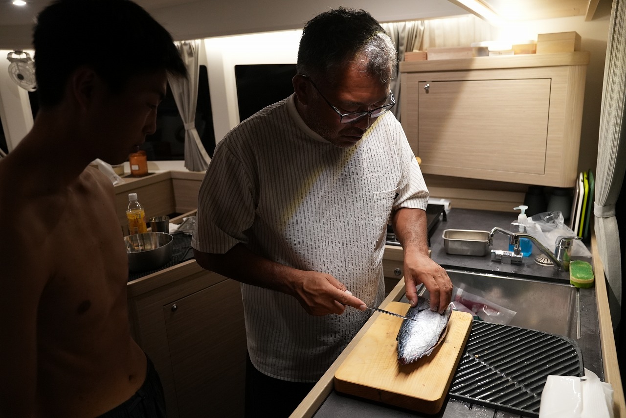 釣れたスマガツオを丁寧に処理。相澤さんはプロの料理人でもある