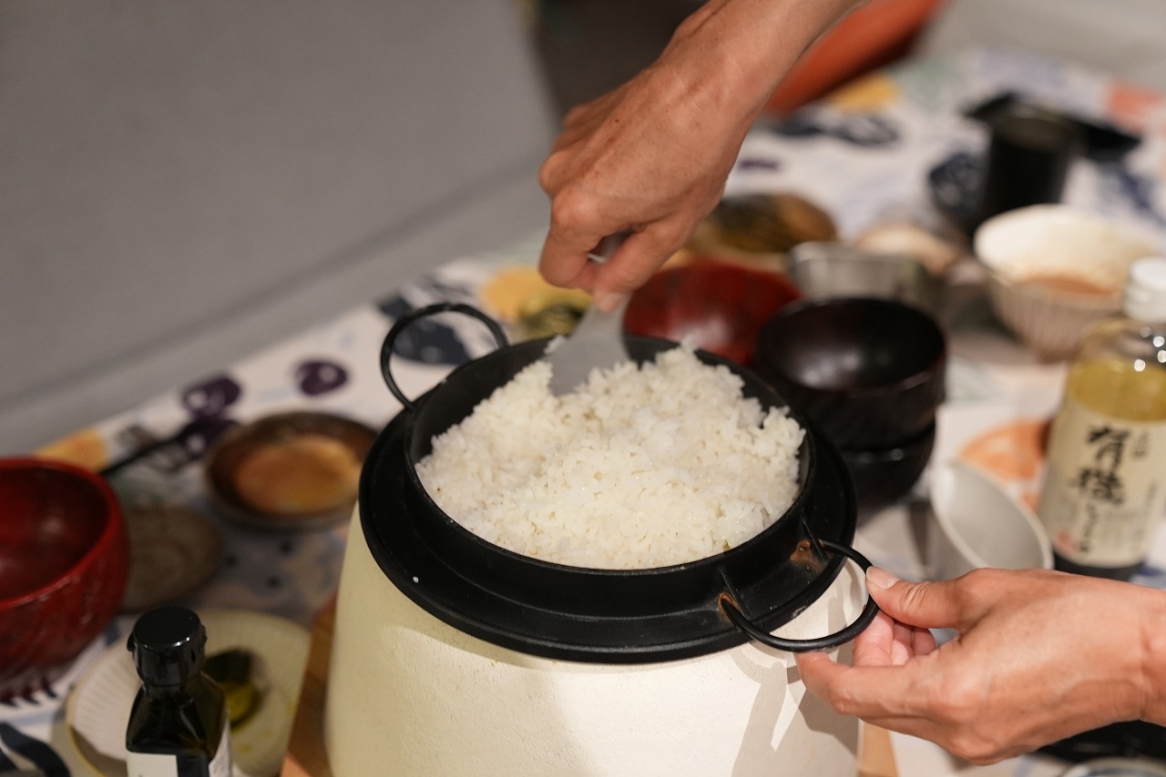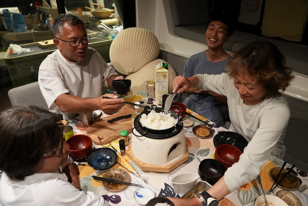 米はキャビンで精米してカマドで炊く。本格的過ぎてびびる