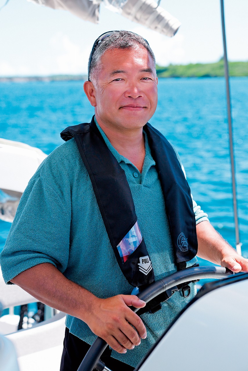 そんな宮古島へセーリングカタマラン、〈アケーディア・ロシナンテ〉(ラグーン42)で渡った相澤規勝(のりかつ)オーナーとその仲間たち。沖縄本島・宜野湾港(ぎのわんこう)マリーナを拠点に活動する相澤さんのクルージングの楽しみ方とは。