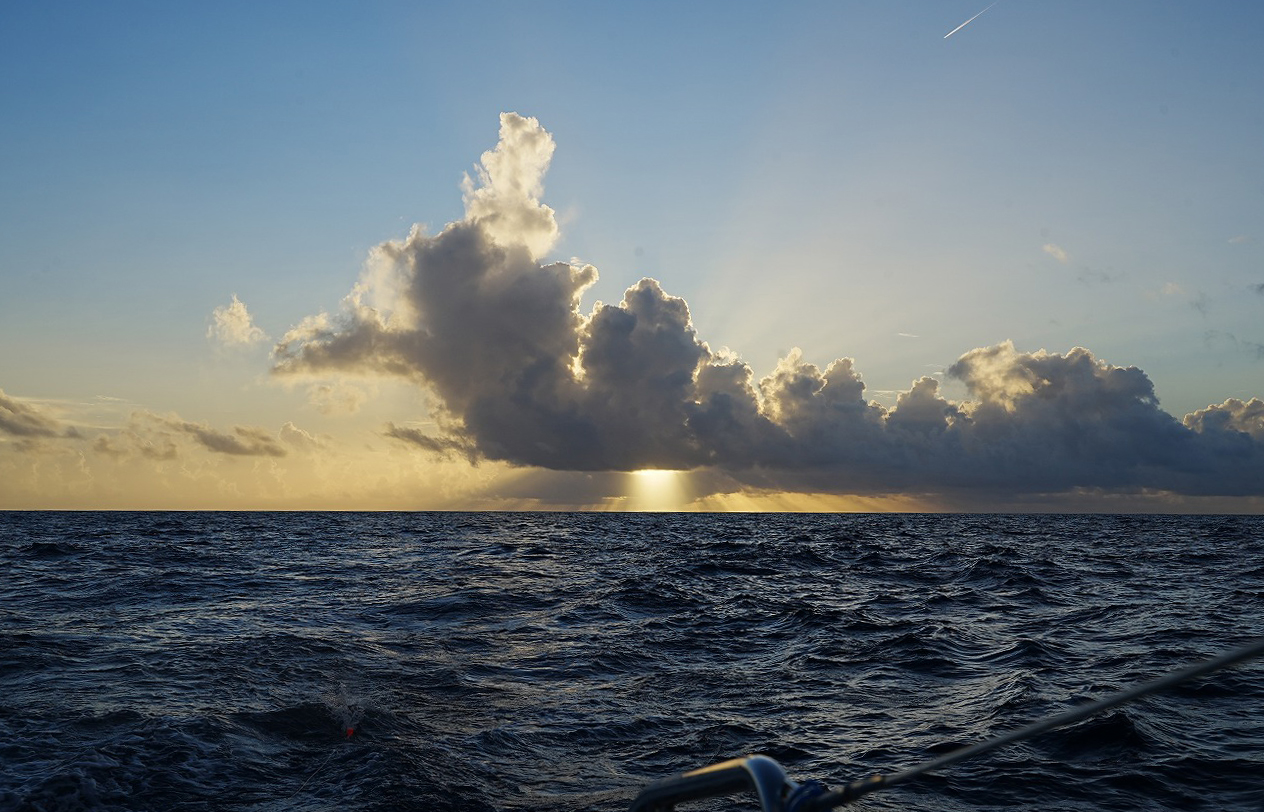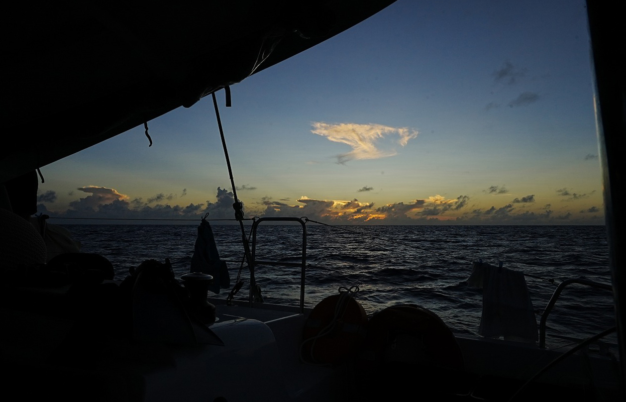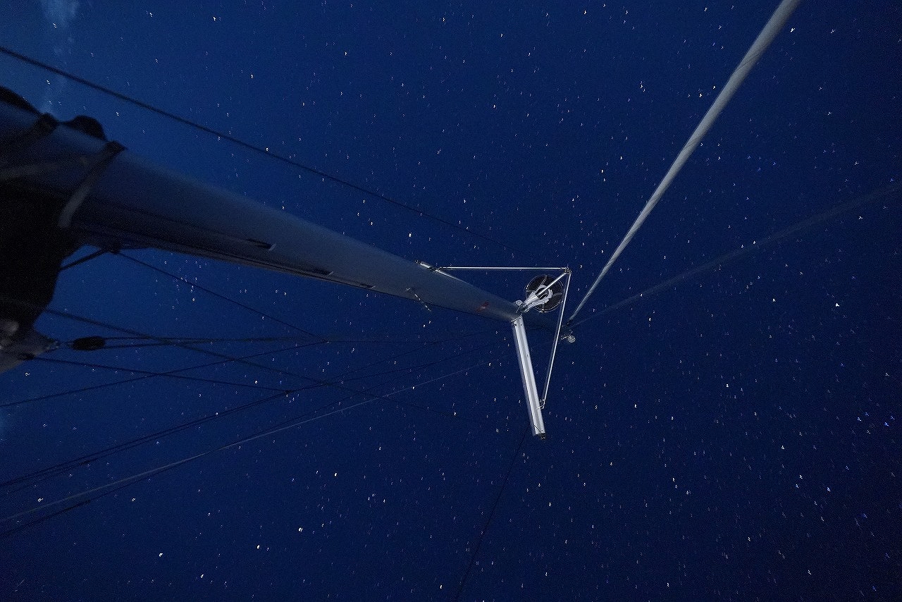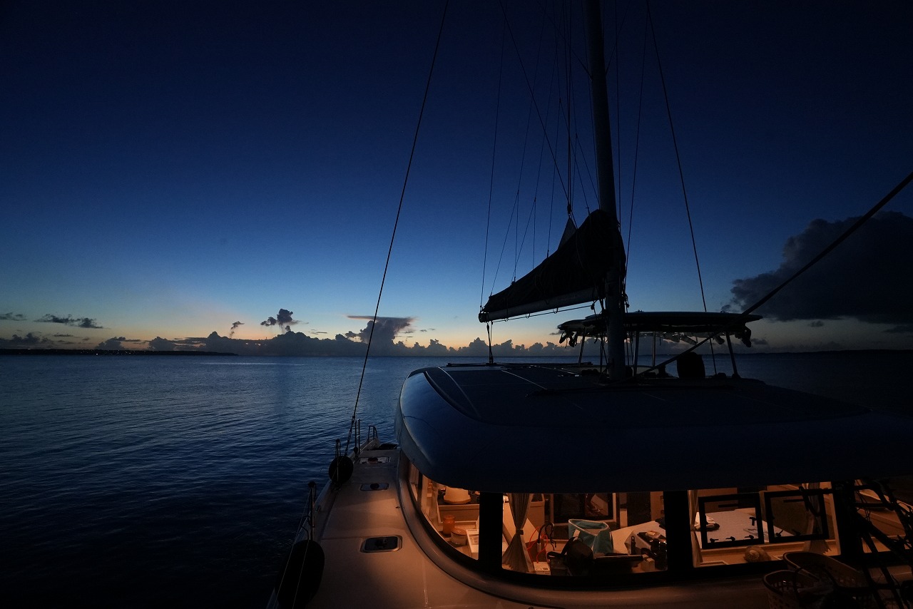 夜更けを迎えた〈アケーディア・ロシナンテ〉(ラグーン42)。セールアップしてナイトセーリングへ向かう・・・