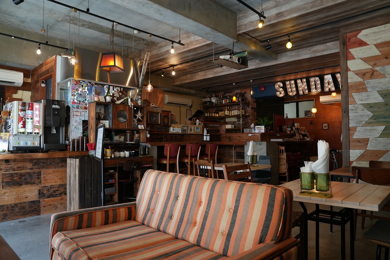 アメリカンダイナーな店内。奥ではアパレルも売っています