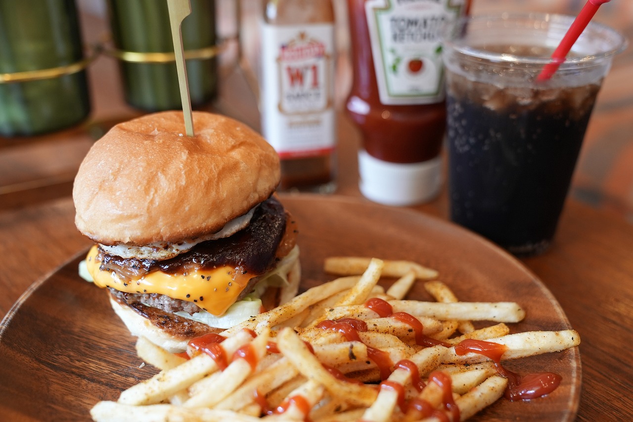 ボリューム満点のハンバーガーを楽しめるダイニング。巨大ハンバーガーにかぶりつこう!