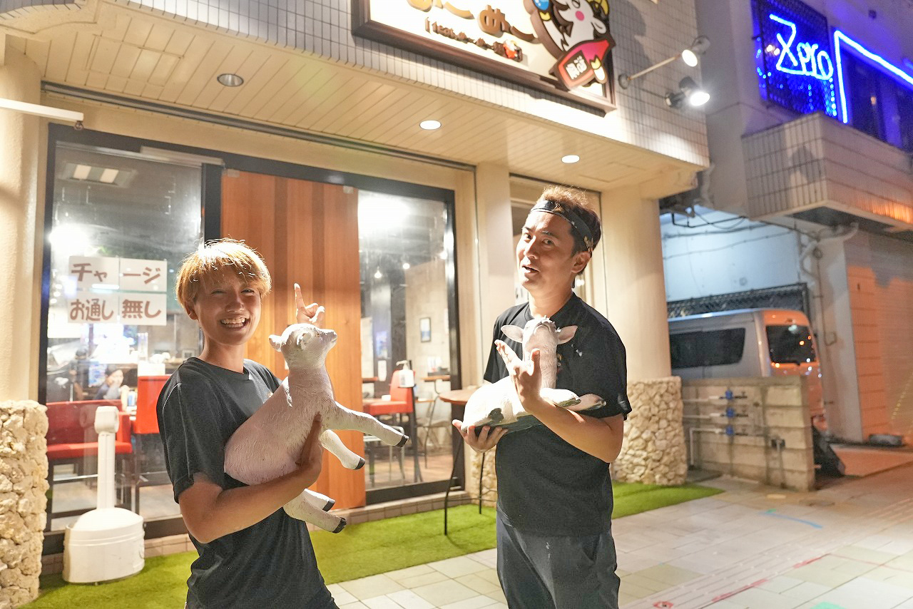 店長の山本鉄平さん(右)。極上のヤギ料理をぜひ!