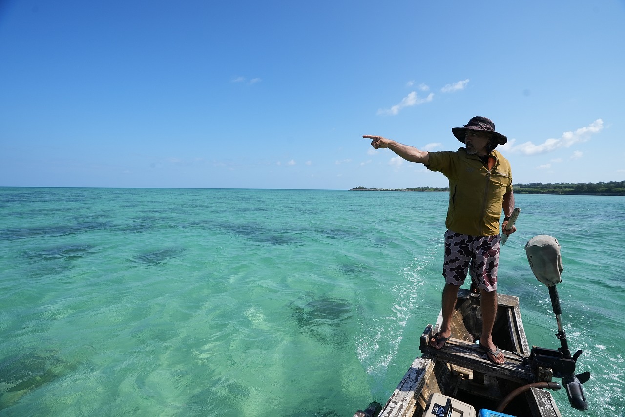 宮古群島、伊良部島生まれの蟹蔵さんこと、吉浜崇浩さんが案内する自然体験ツアー。沖縄の古式船サバニを使ったツアーが人気!