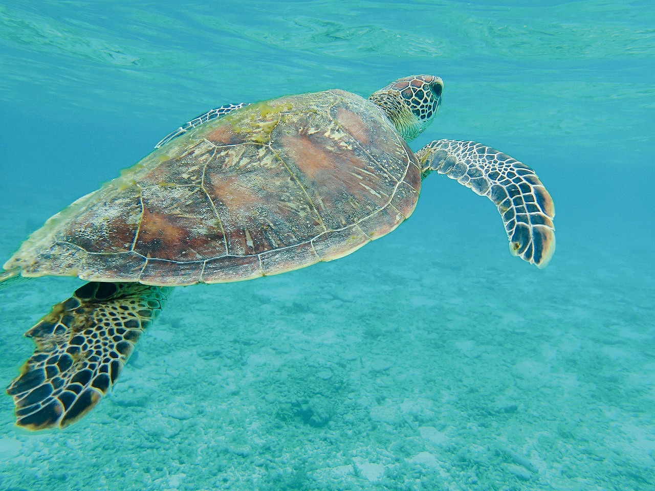今回のツアーは、美しき白砂で有名な17END(ワンセブンエンド)を目指す。信じられないかもしれないが、蟹蔵さんが指笛を吹き、エーク(櫂)で舷側をたたくとウミガメが寄ってくる! アメージング!