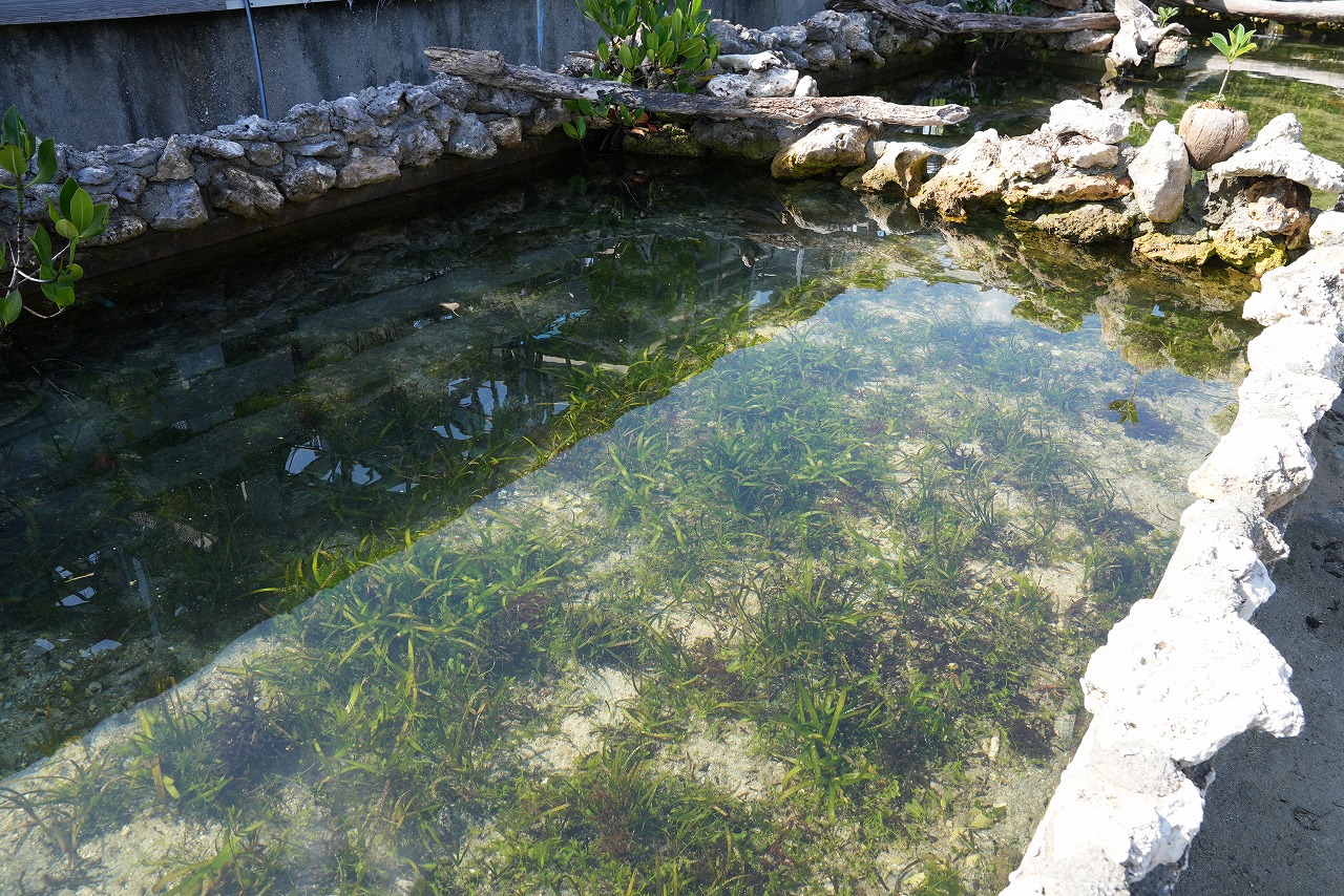 蟹蔵さんが育てるアマモのいけす。魚もたくさん泳いでいます
