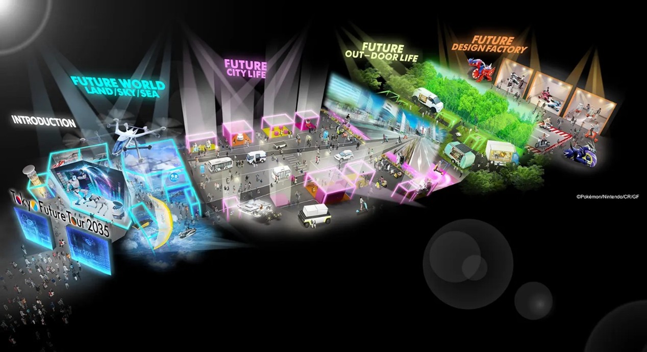 Tokyo Future Tour 2025のイメージ図。左端のイントロから始まり、最終コーナー「DESIGN FACTORY」まで、モビリティの未来を順に体感できるようになっている
