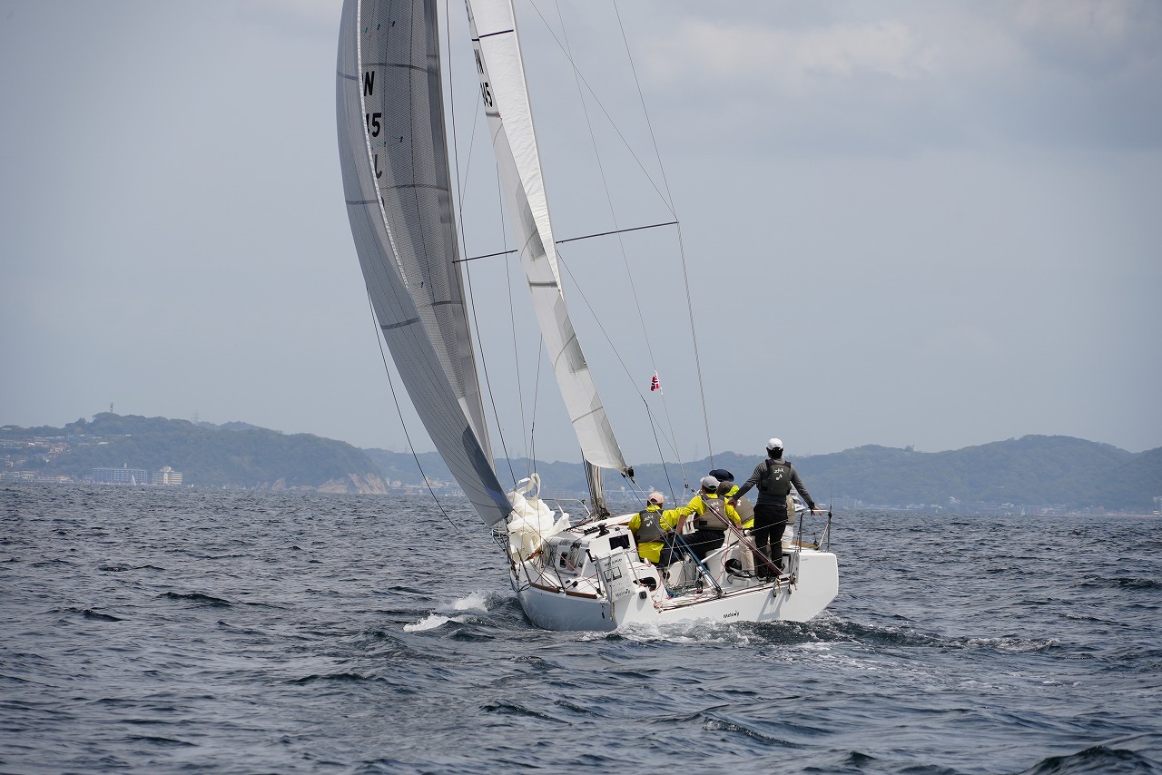 当日は東寄りの風となり、コースは相模湾中央浮漁礁灯浮標を回航する約18マイルが選択された。