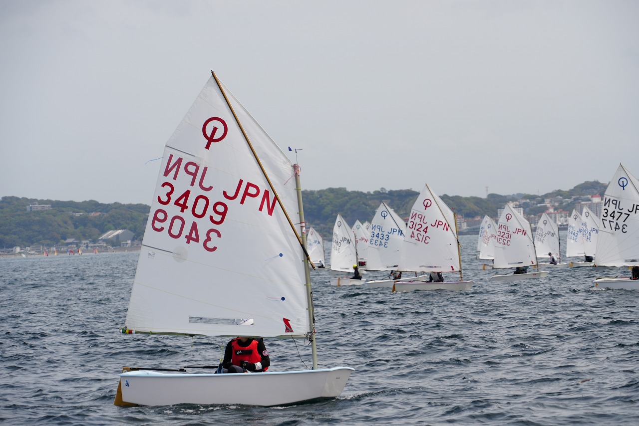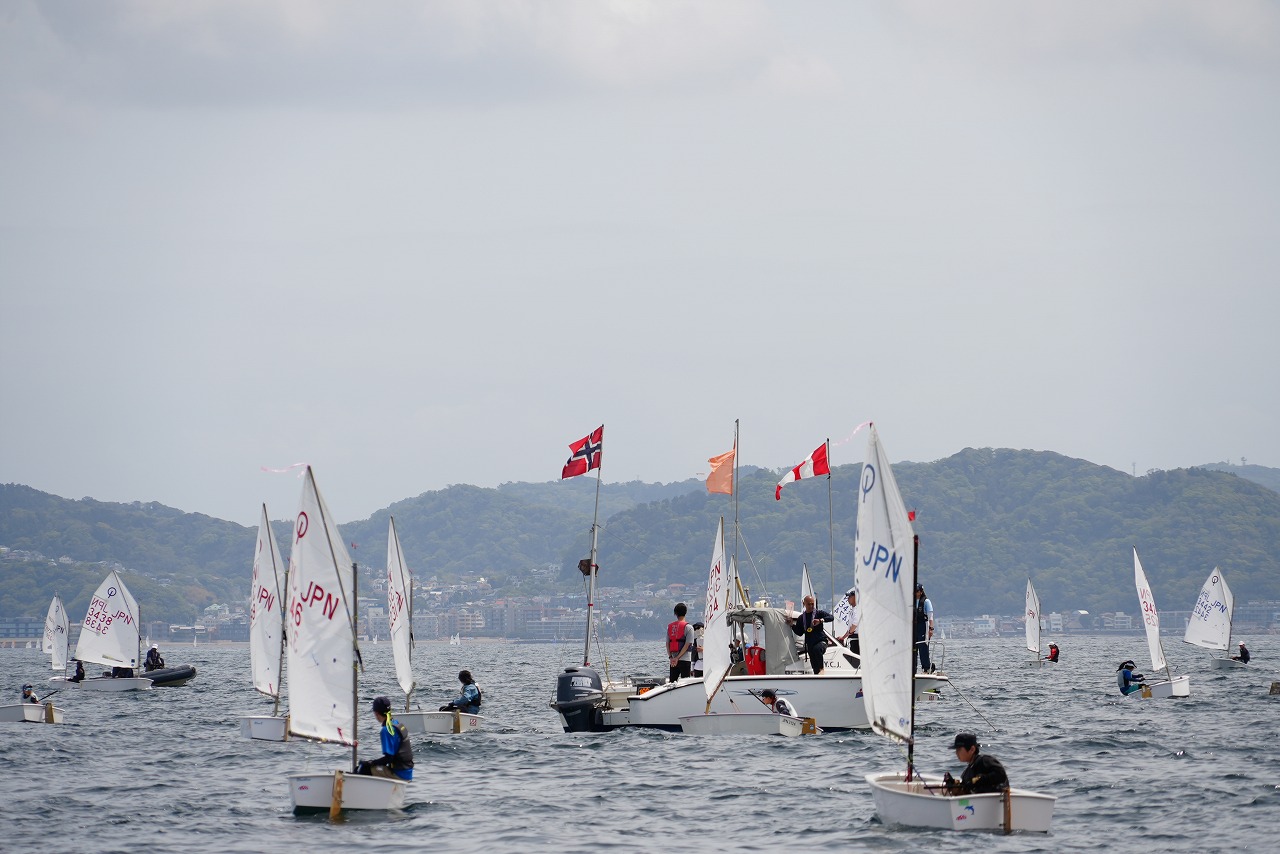 2026年4月18日、江の島沖B1海面では、将来を担うジュニアセーラーたちによるOP級レースが実施された。競技はAクラス(上中級)とBクラス(初級)に分かれ、2日間にわたりAクラスは最大6レース、Bクラスは最大8レースのシリーズ戦として行われる。初日は午前10時25分にAクラス第1レースがスタートし、その後Bクラスが続いた。