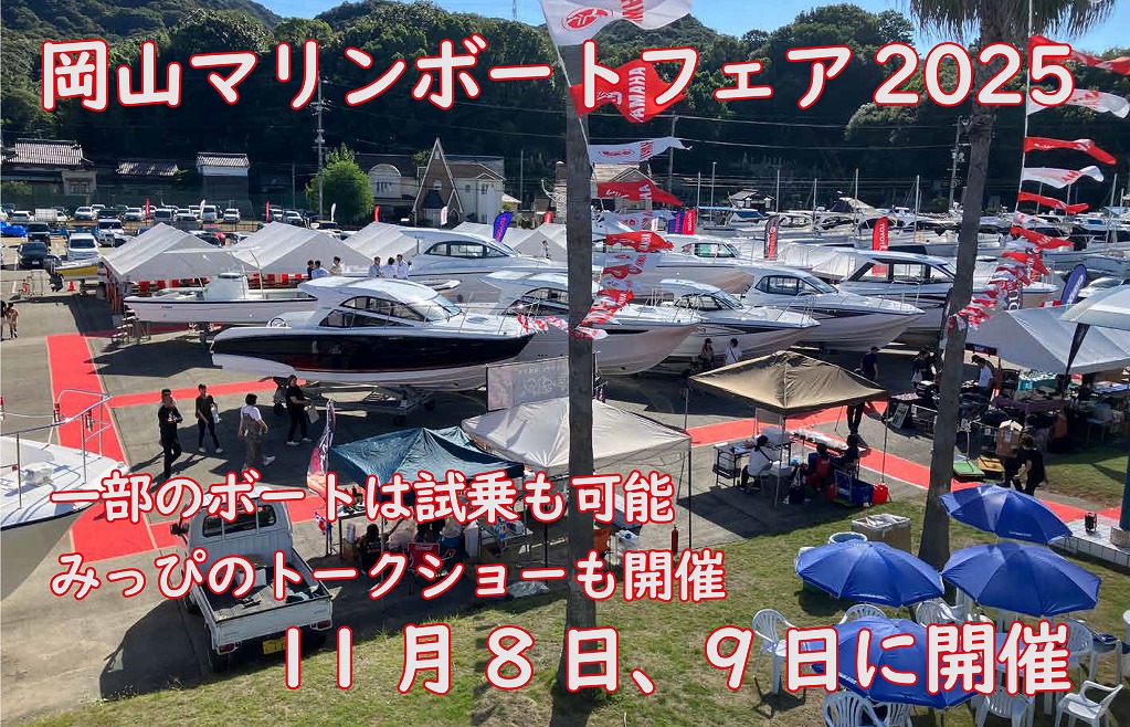 11月8日(土)、9日(日)の2日間、岡山市の宮浦マリーナで「岡山マリンボートフェア2025」が開催される。たくさんのボートに試乗可能(要予約)で、特選艇やボート用品の展示販売なども行われる楽しいイベントだ。