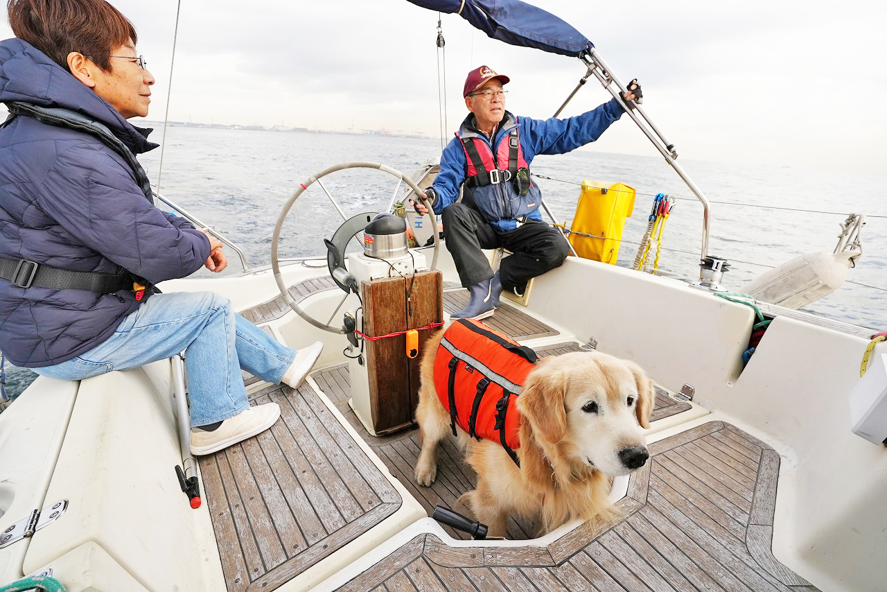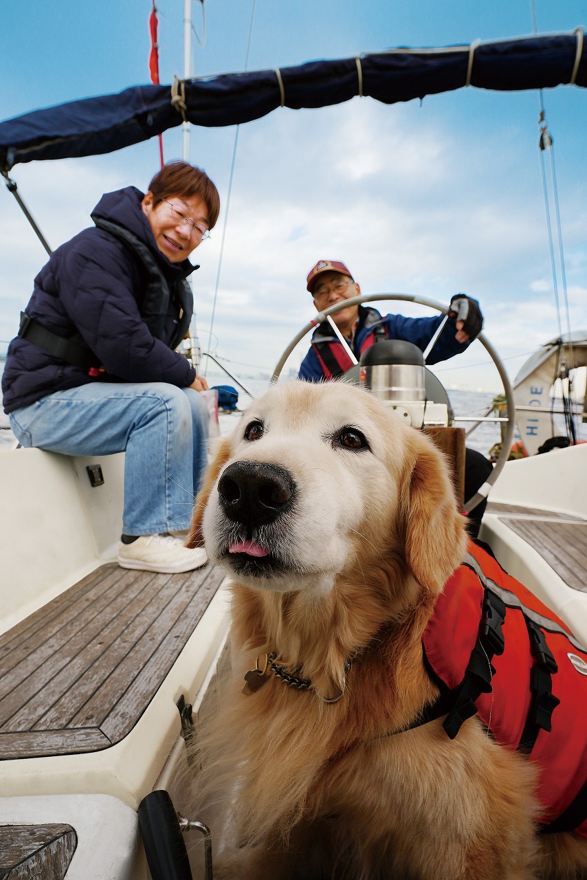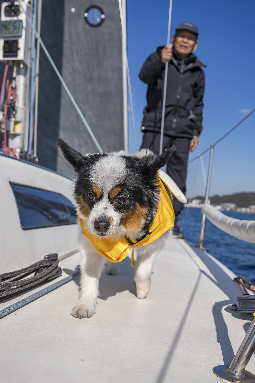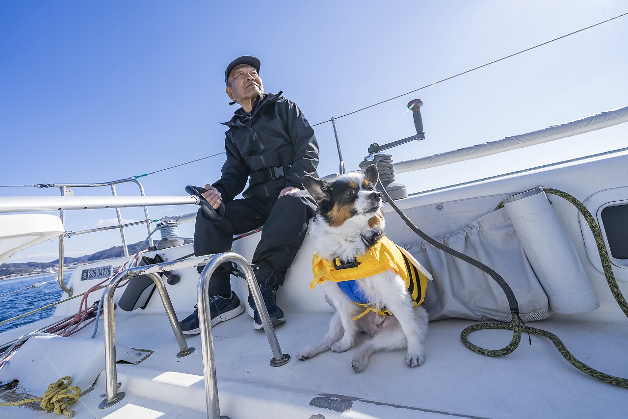photo by Akito Ochiai| 〈スターボード Jr.〉(N/M36)の艇上で一緒にセーリングする、村越一夫オーナーとパピーくん