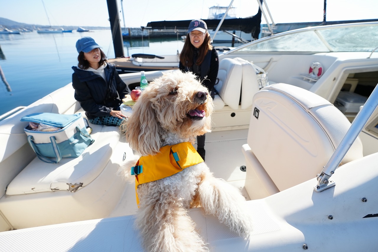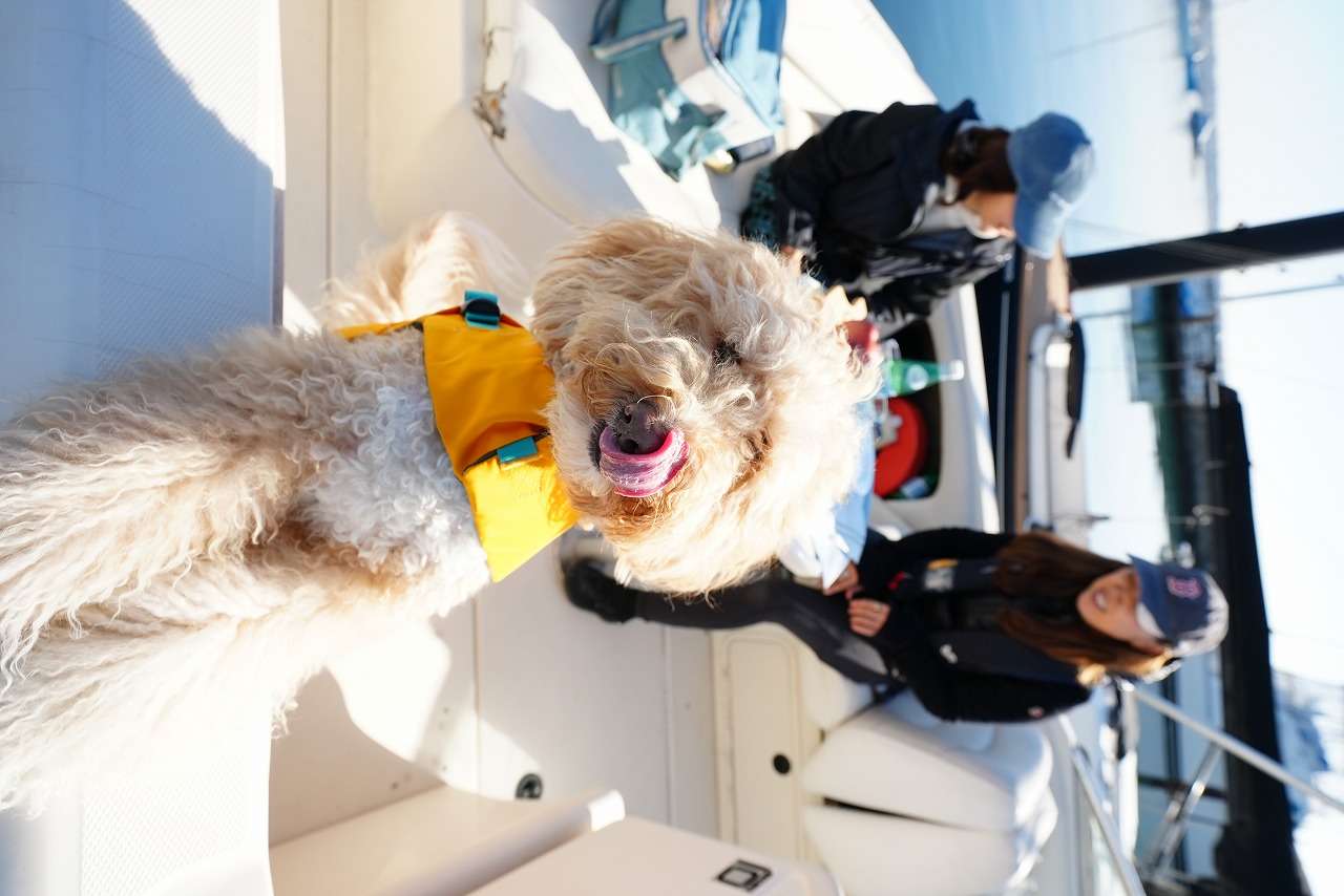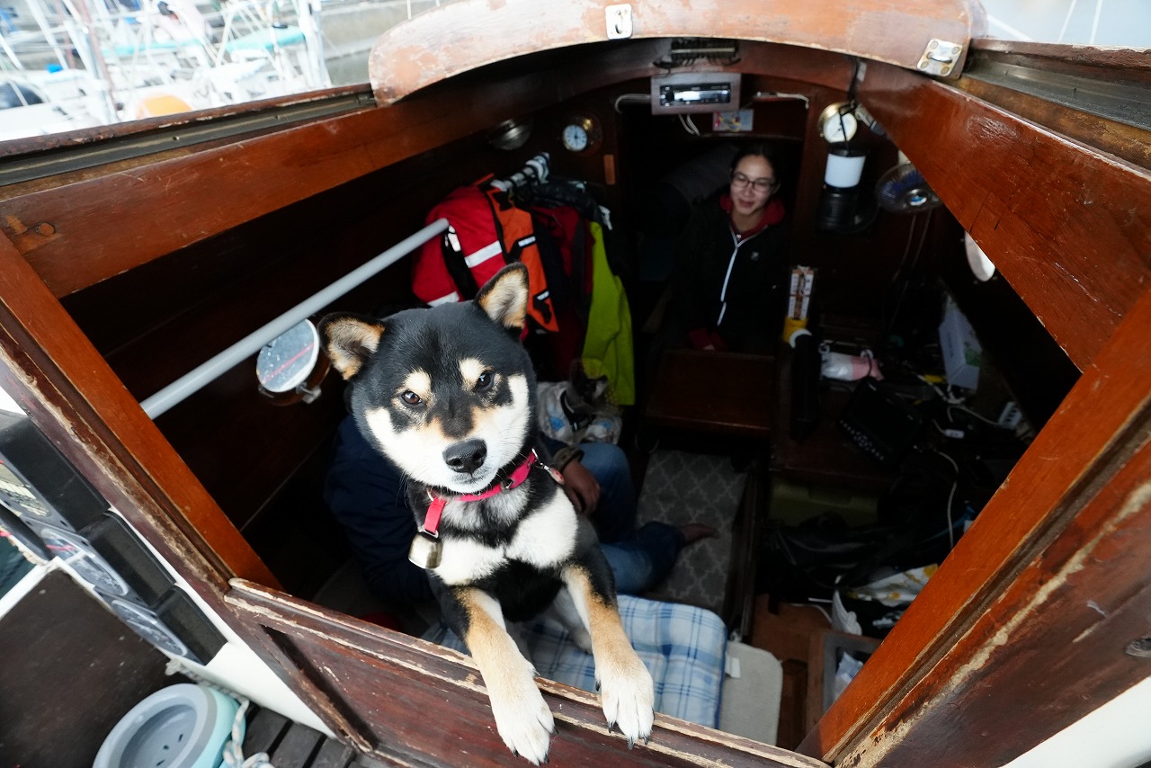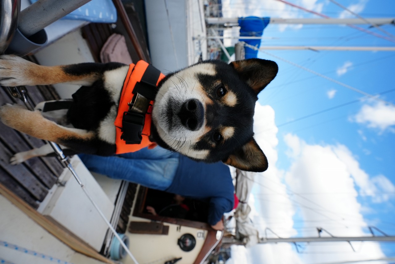 photo by Akito Ochiai| 〈スターボード Jr.〉(N/M36)の艇上で一緒にセーリングする、村越一夫オーナーとパピーくん