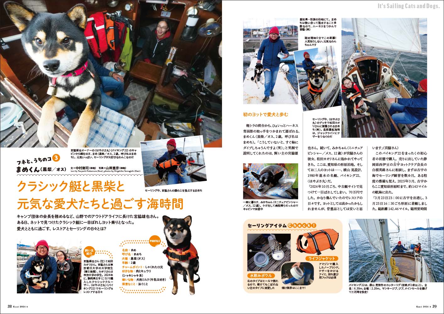 きょろきょろとあたりを見渡しながら、ヨットの上を冒険(散歩)するパピーと、それを後ろで優しく見守る村越一夫オーナーの構図があまりにも尊い。 すべての犬好きセーラーの目に触れるべきと判断し、表紙に推した。