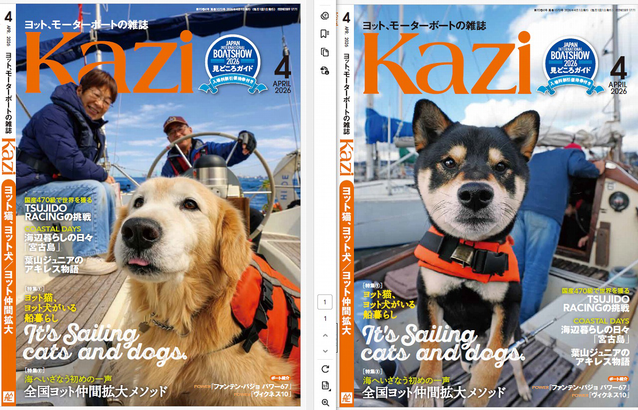月刊『Kazi』2026年4月号(3/5発売)の表紙を覚えておいでだろうか? そう、ゴールデンレトリバーのパースくんがどーんと掲載された、超かわいい表紙だ。ペット雑誌か!? と間違えて購入した人もいたとかいないとか(いてほしい)。舵誌94年の歴史の中で、わんちゃんが表紙になった号はあるにはあるが、ここまで大きく載ったことはないのだ。