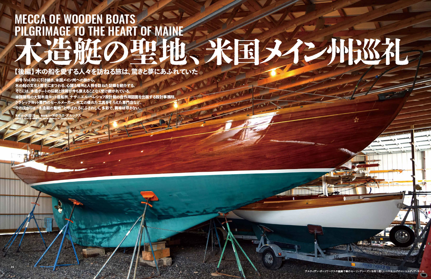 前号(Vol.40)に引き続き、米国メイン州への旅から、木の船の文化と歴史にまつわる、心躍る場所と人物を訪ねた記録を紹介。そこには、木造ボートの伝統と技術が今も衰えることなく受け継がれている。