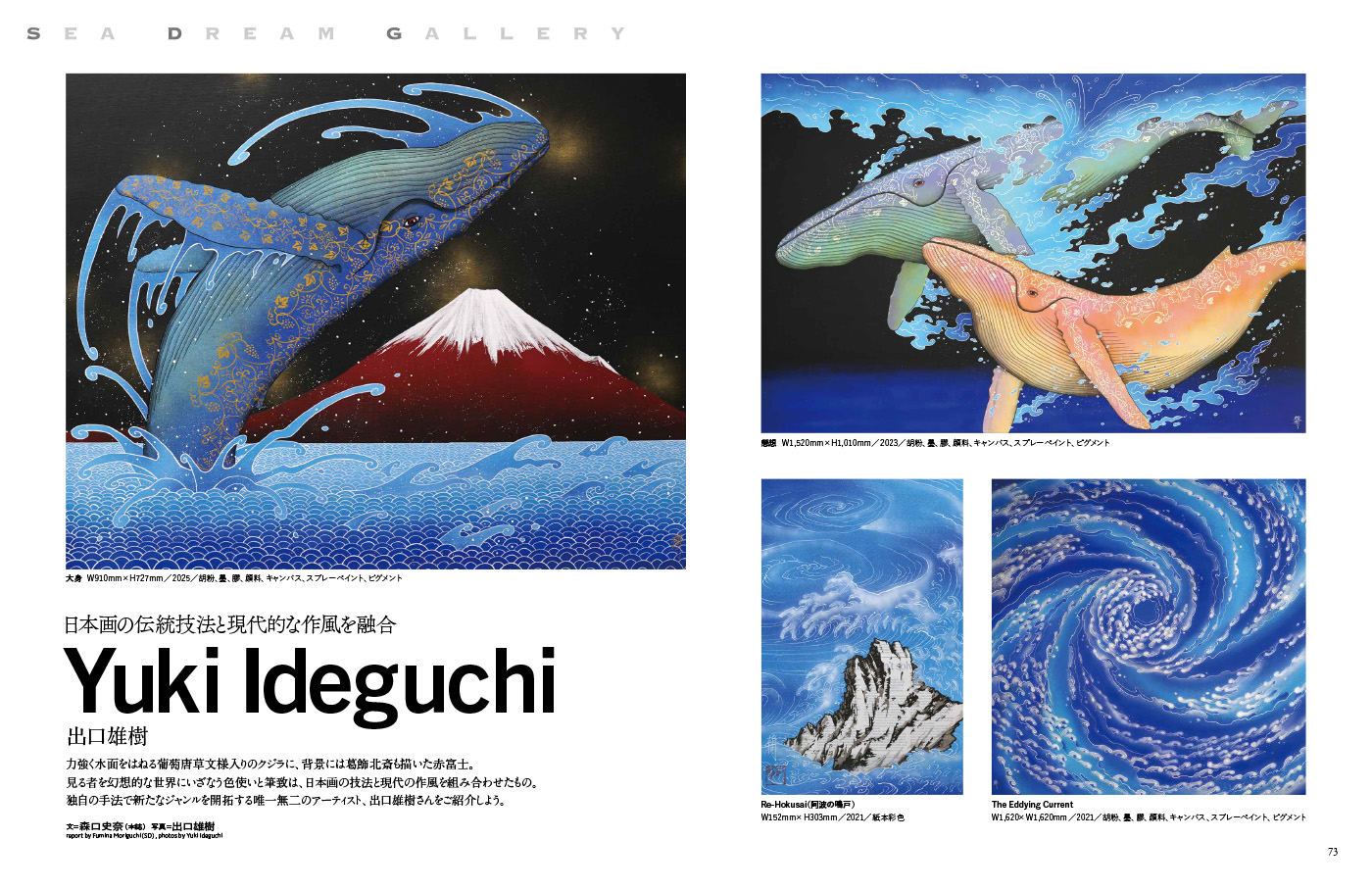 Sea Dream Galleryコーナーでは、日本画の伝統技法と現代的な作風を融合させる、独自な手法で新たなジャンルを開拓する唯一無二のアーティスト、出口雄樹さんの作品と人物像を紹介。