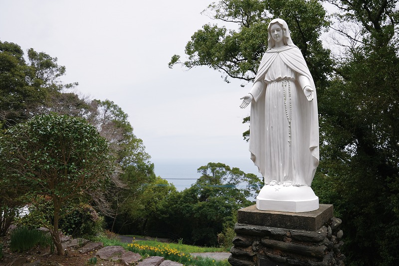高台に立つ石造りの大野教会堂は、フランス人宣教師マルク・マリー・ド・ロ神父が設計し、私財を投じて信徒とともに建設。1893年に完成した。