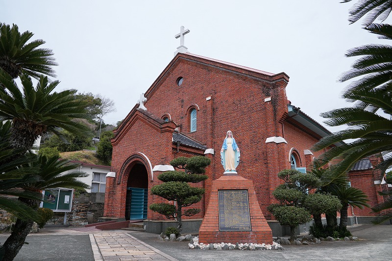 重厚なレンガ造りの黒崎教会もド・ロ神父による建造。遠藤周作の『沈黙』の舞台になったことでも知られている