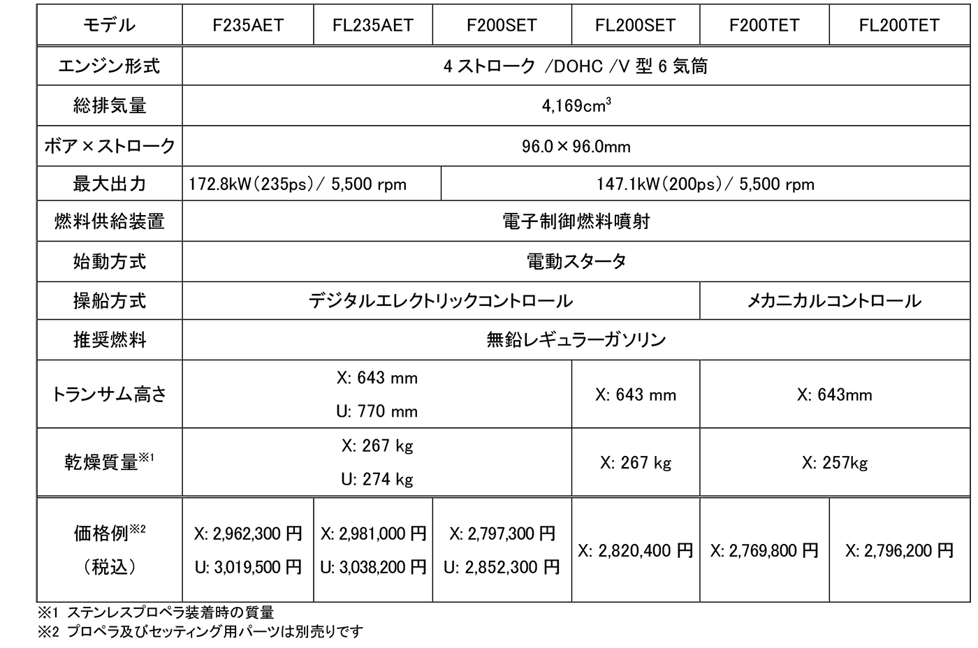 今回発売するのは、V型6気筒4169ccのエンジンを採用する「F235A/FL235A」「F200S/FL200S」「F200T/FL200T」の大型船外機3機種6モデル。長時間航行および重荷時などの高負荷運転に対して高い耐久性を備えるのが特徴。